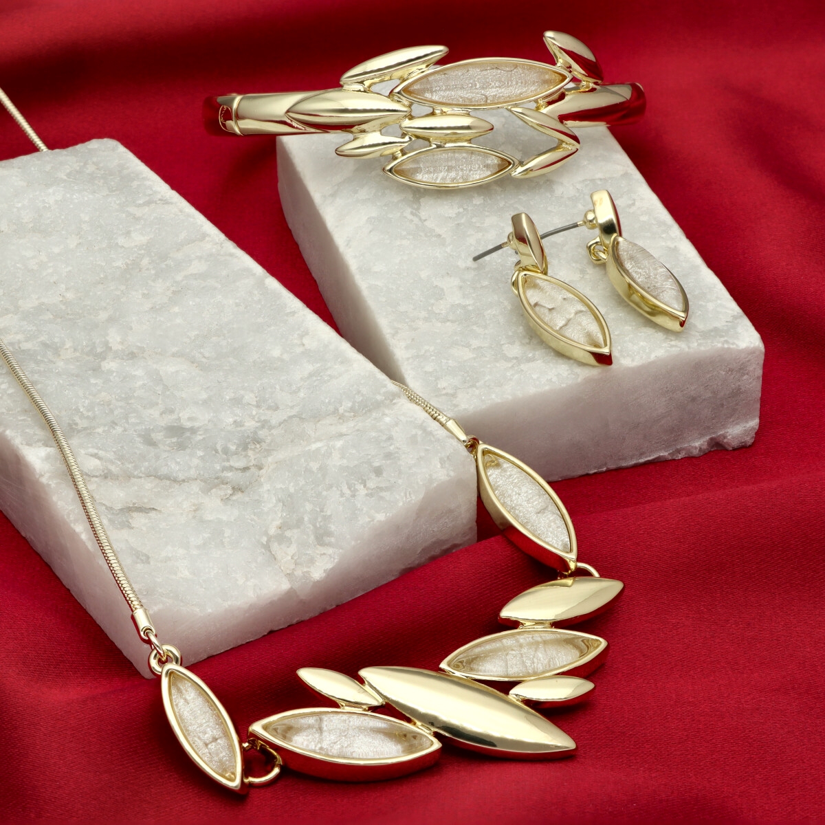 Uroczy, dekoltowy naszyjnik wykonany z antyalergicznego metalu i kolorowej żywicy z efektem głębi. Długość 45 cm + 8 cm regulacja. Szukaj do kompletu bransoletki i kolczyków o tym samym indeksie numerycznym.