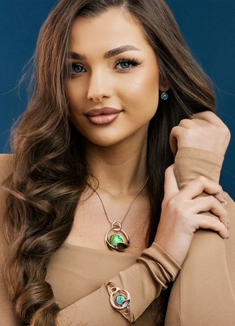 Elegancki długi naszyjnik wykonany z antyalergicznego metalu i żywicy jubilerskiej z efektem głęb. Długość 70 cm + 8 cm regulacja. Szukaj do kompletu bransoletki i kolczyków o tym samym indeksie numerycznym.