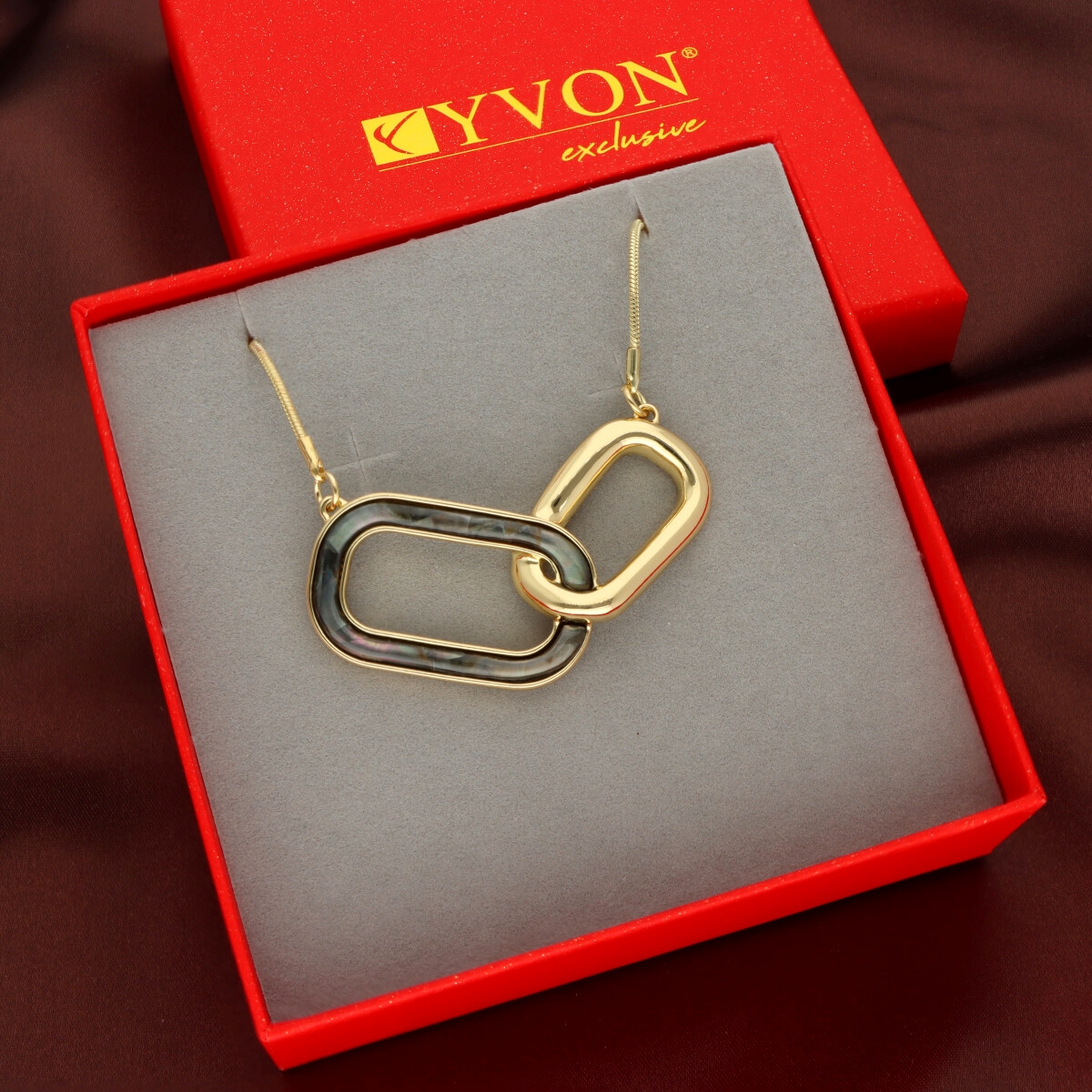 Naszyjnik zapakowany jest w efektowne czerwone pudełko.