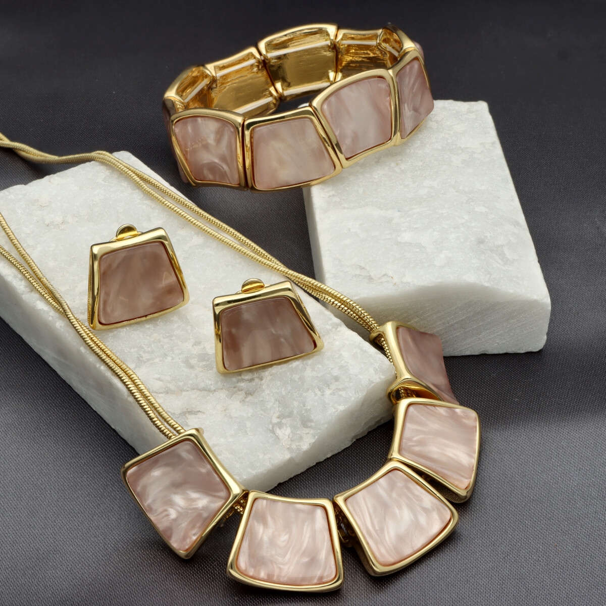 Eleganski dekoltowy naszyjnik, wykonany z żywicy i skóry naturalnej. Długość 45 cm + 8 cm regulacji. Produkt hipoalergiczny. Stylowy i elegancki – doskonale prezentuje się solo lub jako część zestawu z bransoletką i klipsami.