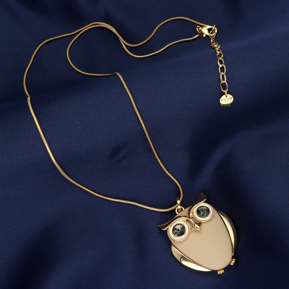 Naszyjnik SOWA. Metal antyalergiczny (mosiadz, stop cynku), matowiona żywica, szkło fasetowane. Długość: 70 cm + regulacja.