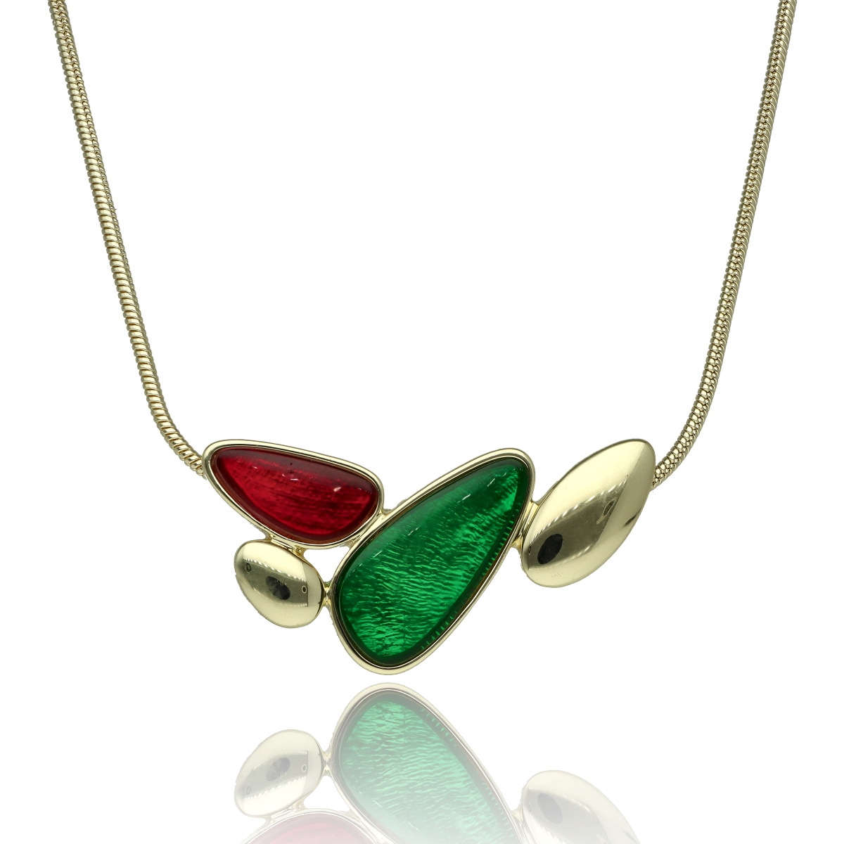 Uroczy, dekoltowy naszyjnik wykonany z antyalergicznego metalu i kolorowej żywicy z efektem głębi. Długość 45 cm + 8 cm regulacja. Szukaj do kompletu bransoletki i kolczyków o tym samym indeksie numerycznym.