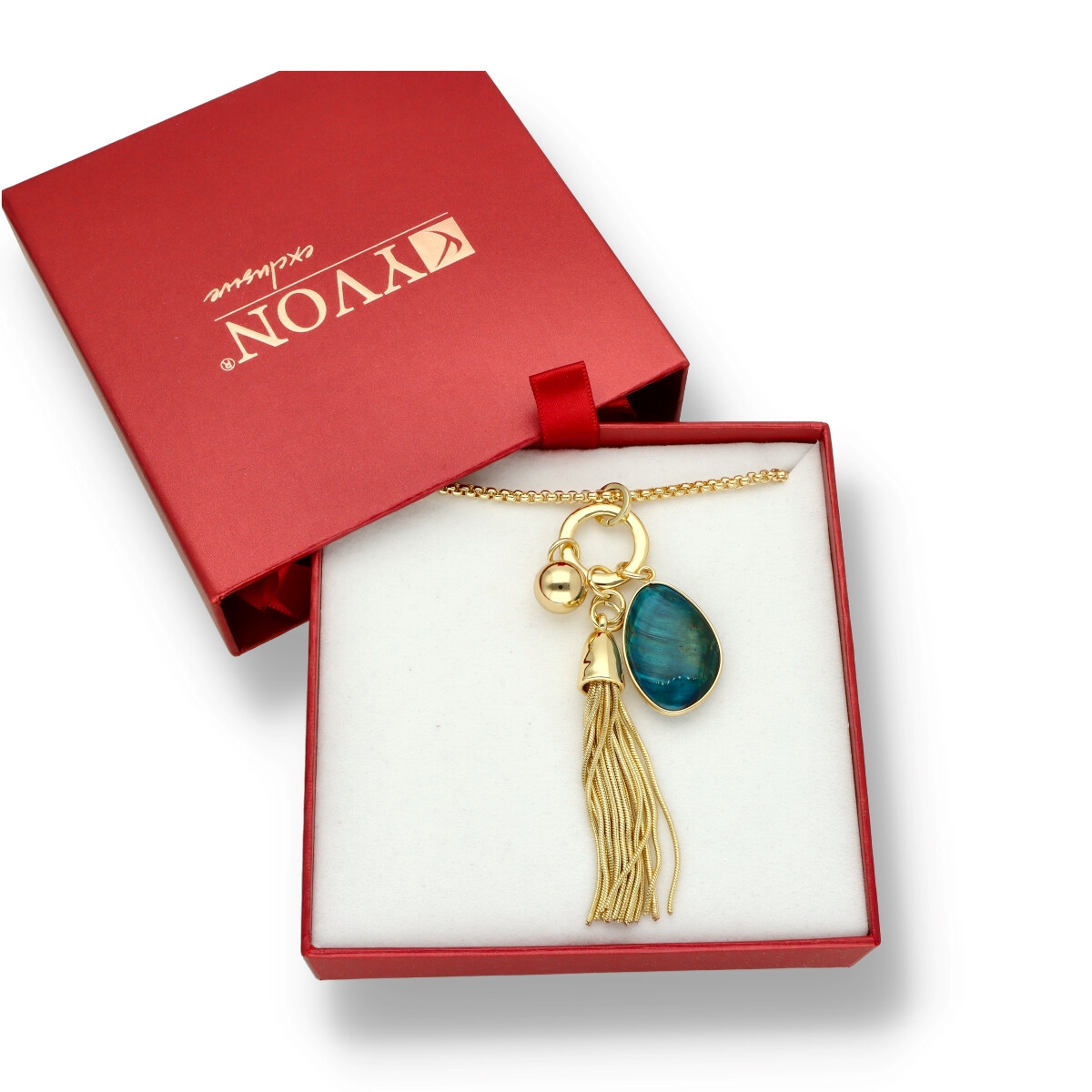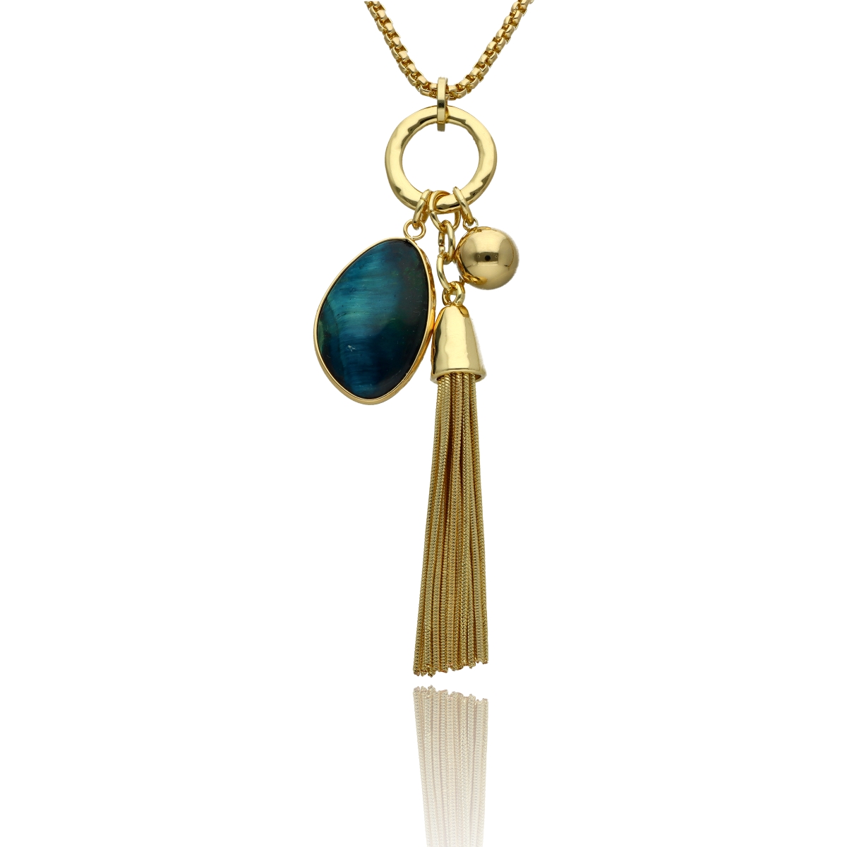 Elegancki, dekoltowy naszyjnik z okazałym kwarcem. Wykonany z wysokiej jakości metalu hypoalergicznego (zamak). Długość: ok 70 cm.