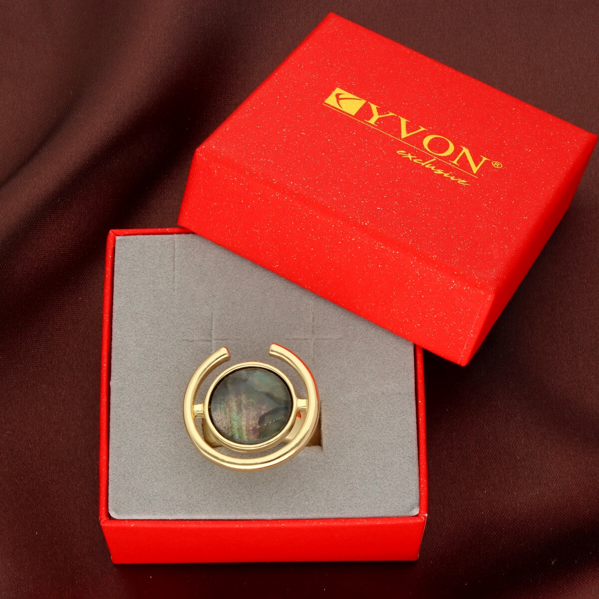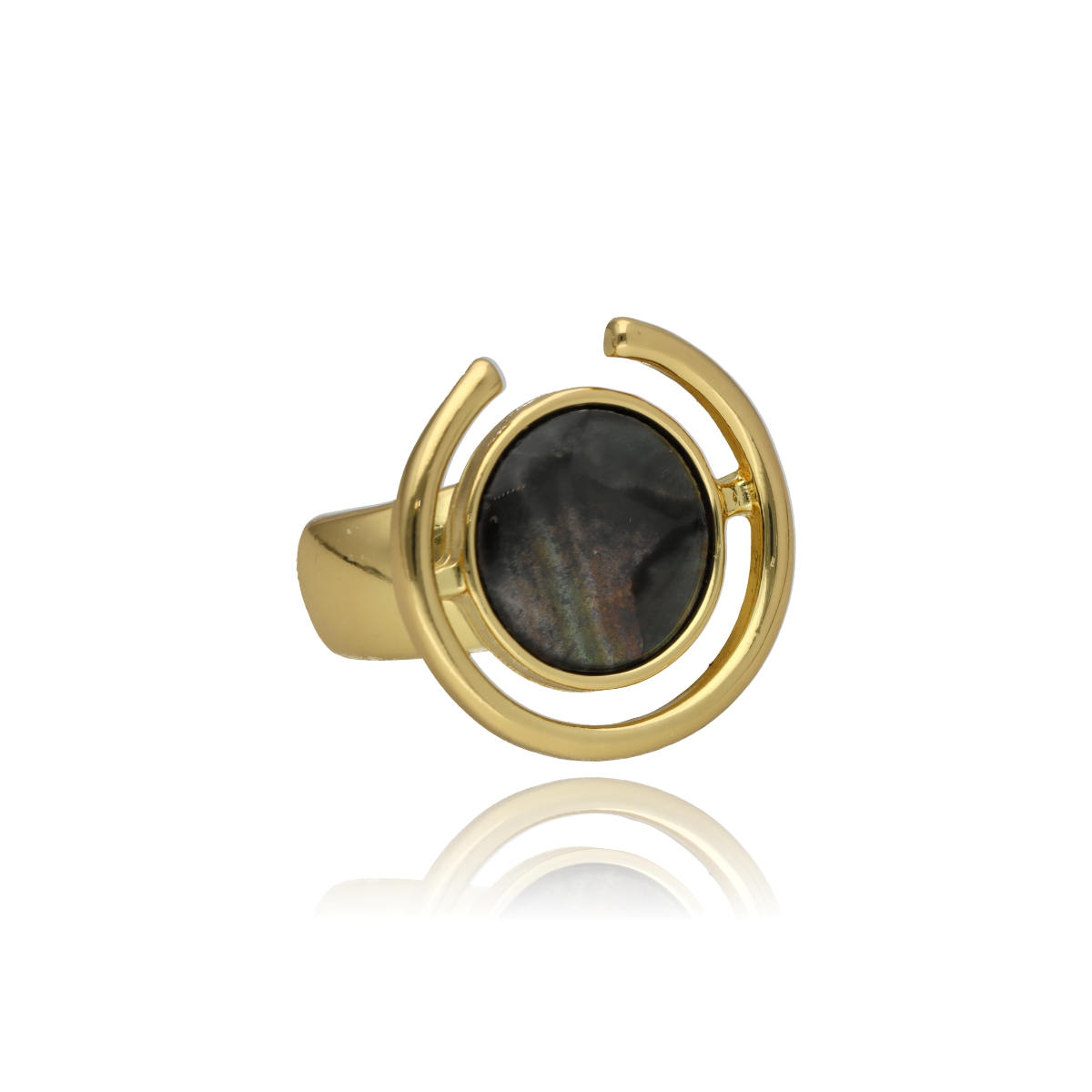 Elegancki pierścionek / damski sygnet wykonany z metalu antyalergicznego – bezpieczny nawet dla wrażliwej skóry, ozdobiony naturalną muszlą szarą.