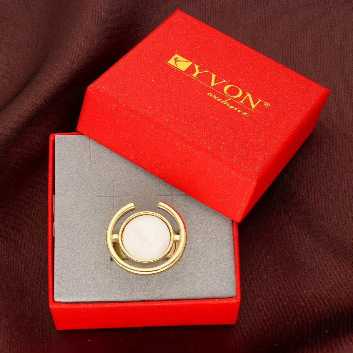 Elegancki pierścionek / damski sygnet wykonany z metalu antyalergicznego – bezpieczny nawet dla wrażliwej skóry, ozdobiony naturalną muszlą mleczną.