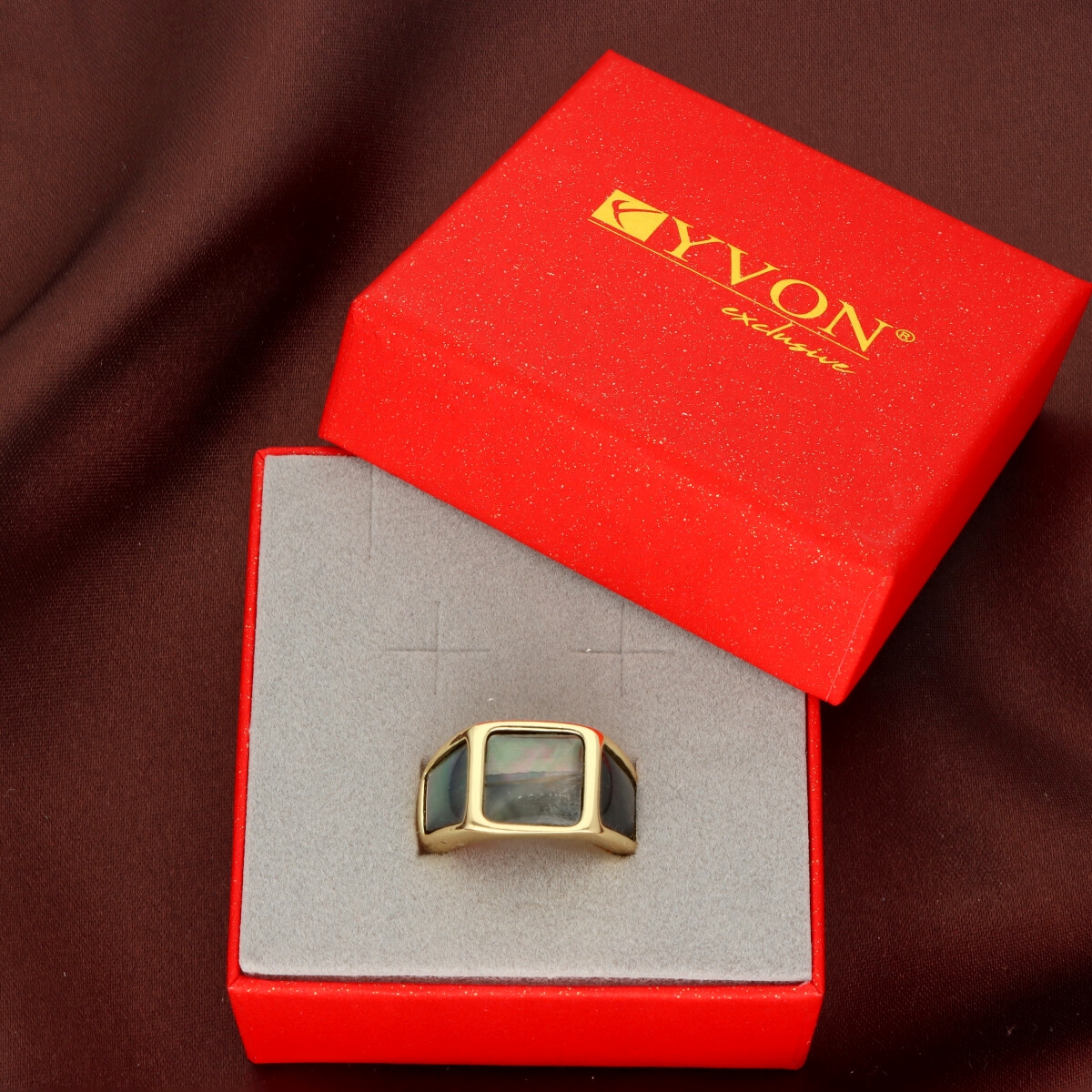 Elegancki pierścionek / damski sygnet wykonany z metalu antyalergicznego – bezpieczny nawet dla wrażliwej skóry, ozdobiony naturalną muszlą szarą.