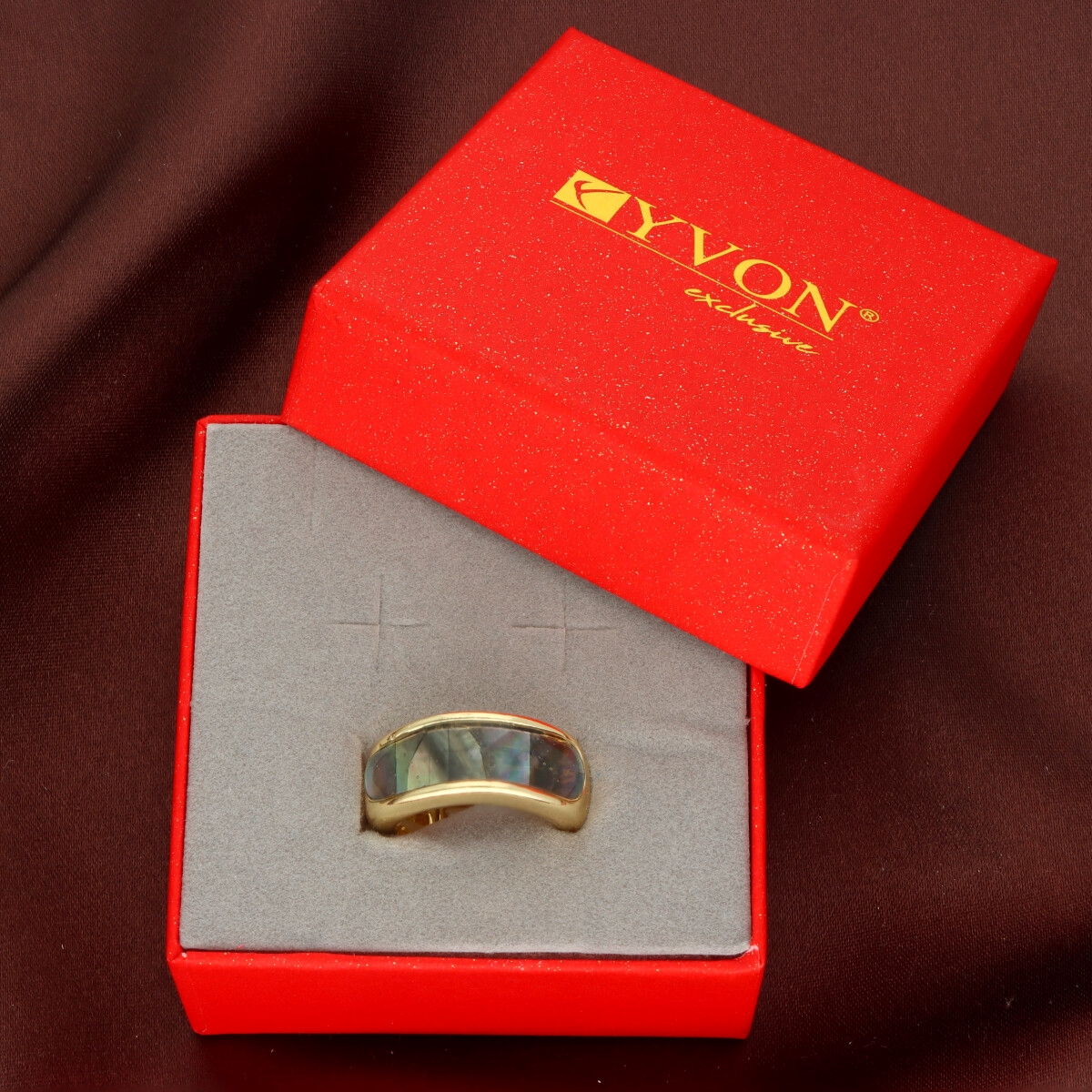Elegancki pierścionek / damski sygnet wykonany z metalu antyalergicznego – bezpieczny nawet dla wrażliwej skóry, ozdobiony naturalną muszlą szarą.