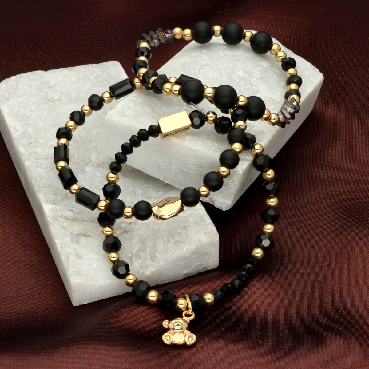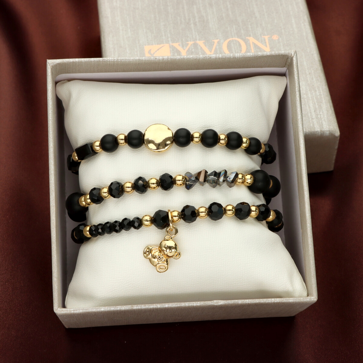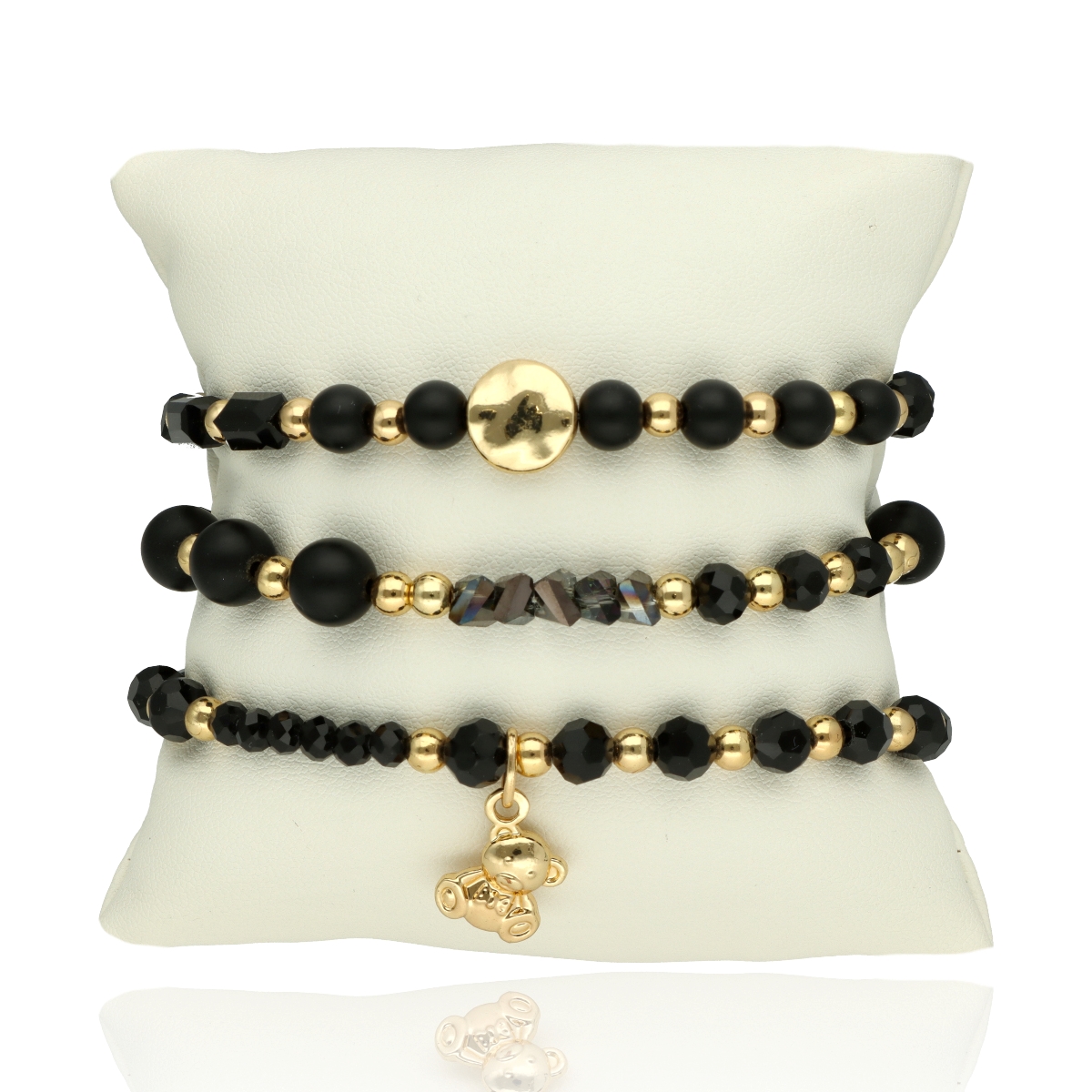 Zestaw trzech bransoletek z KAMIENIAMI NATURALNYMI (AGAT), który łączy w sobie klasyczną elegancję i najwyższą jakość wykonania. Każdy element został starannie dobrany – od antyalergicznego mosiądzu, przez elementy z kamieni, aż po misternie fasetowane koraliki z kryształu górskiego. Subtelne połączenie tych materiałów tworzy niepowtarzalny, ponadczasowy dodatek. Bransoletki zapakowane są w eleganckie pudełeczko z miękką poduszeczką, co sprawia, że zestaw doskonale nadaje się na prezent.