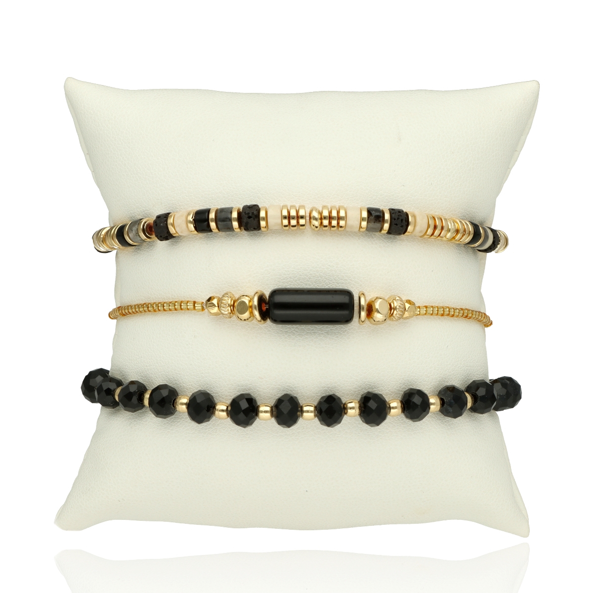 Zestaw trzech bransoletek z hipoalergicznego mosiadzu iKAMIENI NATURALNYCH: lawa, agat, obsydian.