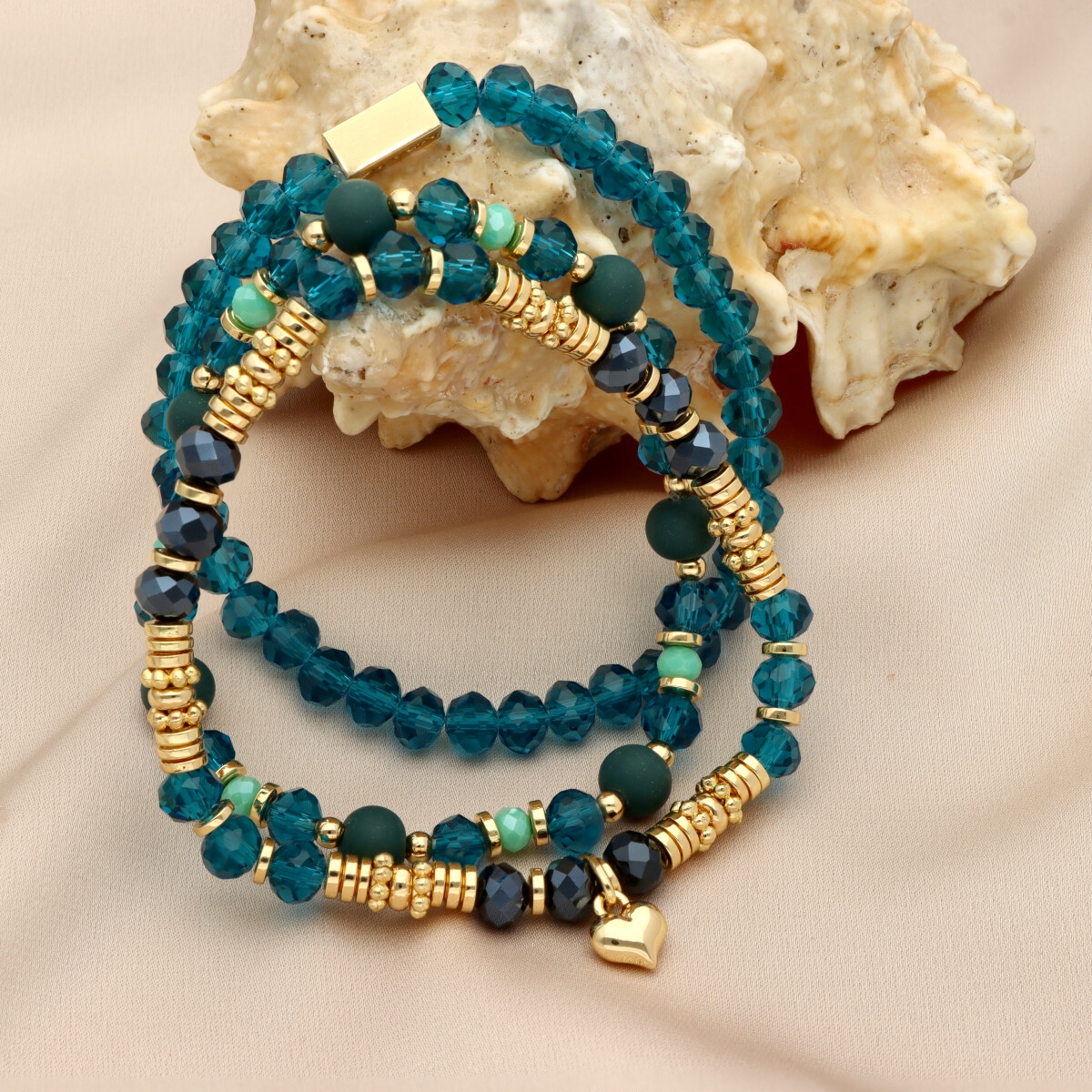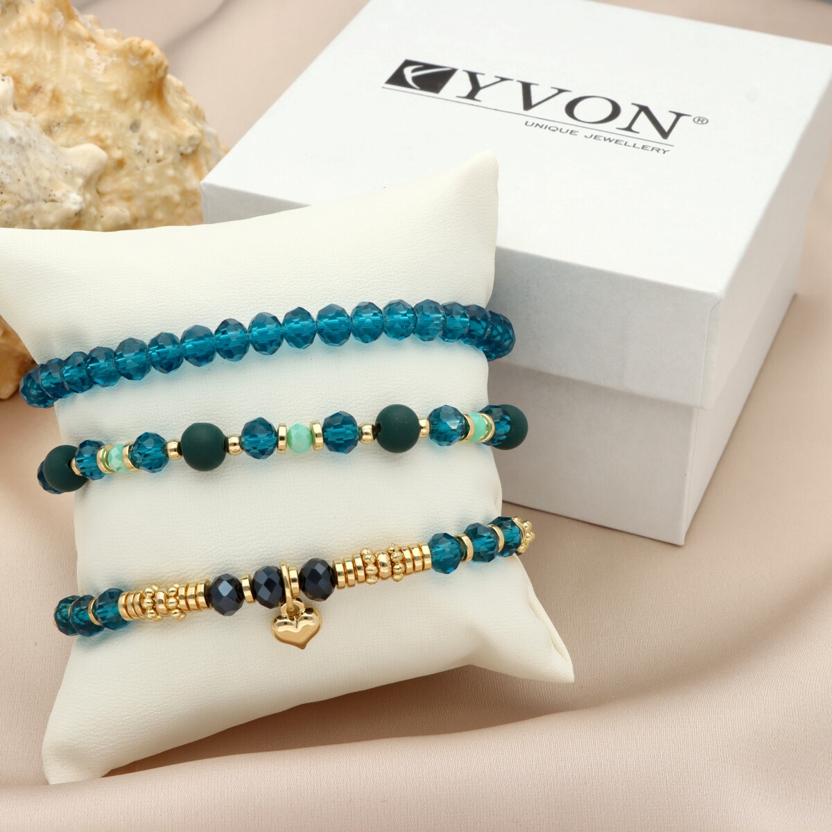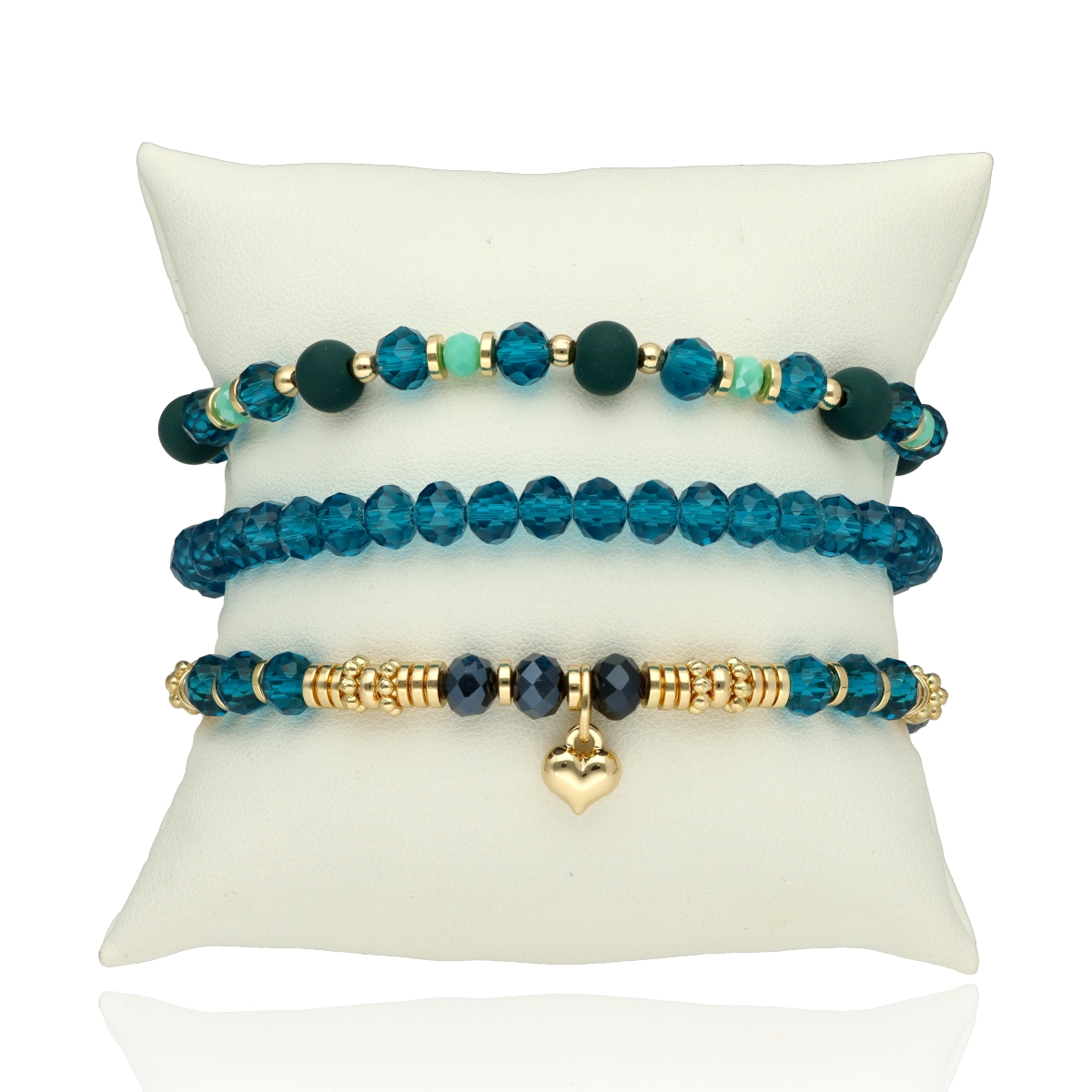Zestaw trzech bransoletek z hipoalergicznego mosiadzu i szkła kryształowego. Komplet, który łączy w sobie klasyczną elegancję i najwyższą jakość wykonania. Każdy element został starannie dobrany, a ich subtelne połączenie tworzy niepowtarzalny dodatek zarówno na codzień, jak i do eleganckiej kreacji. Bransoletki zapakowane są w eleganckie pudełeczko z poduszeczką, co sprawia, że zestaw doskonale nadaje się na prezent.