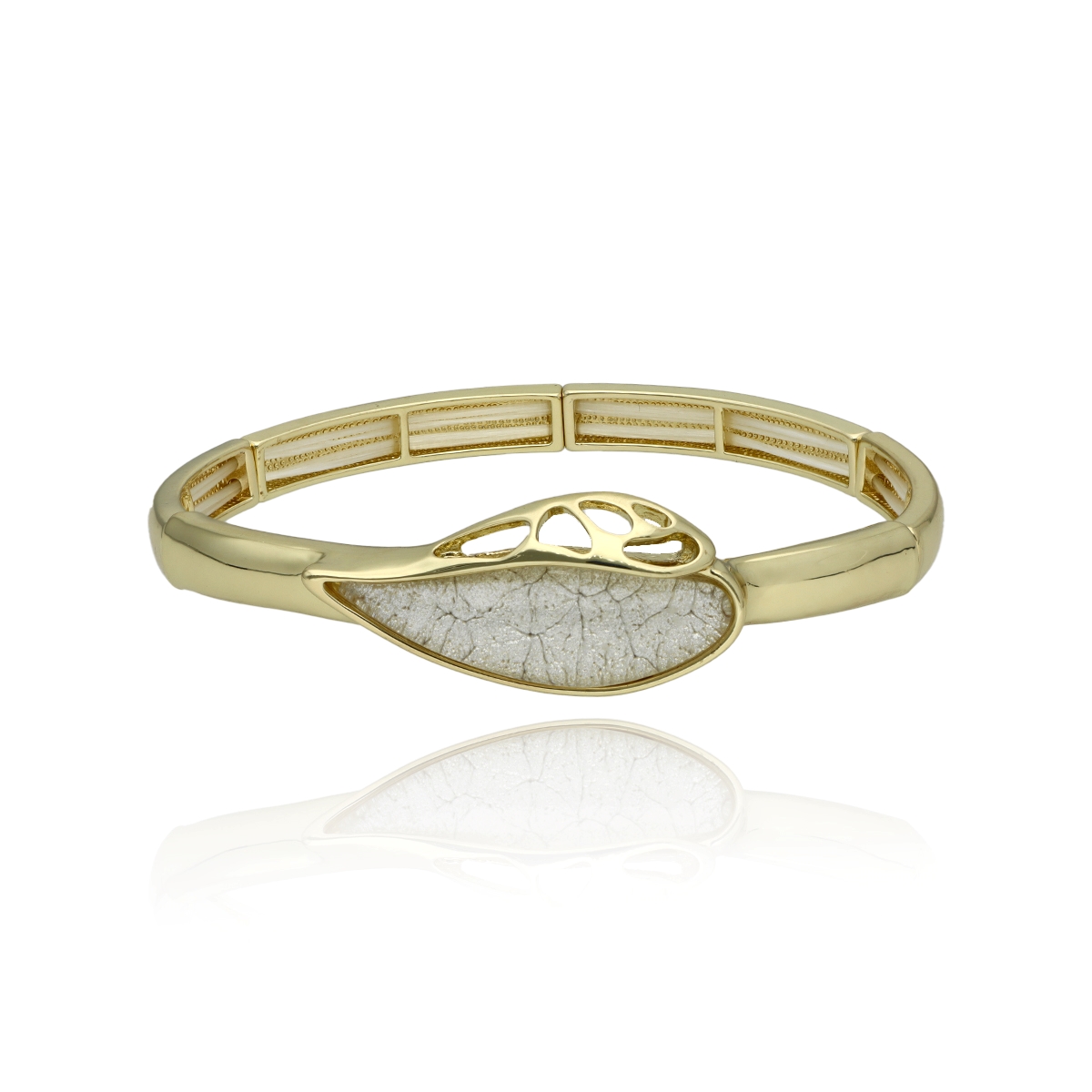 Elegancka bransoletka wykonana z metalu antyalergicznego i żywicy. Rozmiar uniwersalny (na rozciągliwych gumkach). Szukaj do kompletu naszyjnika i kolczyków o tym samym indeksie numerycznym.