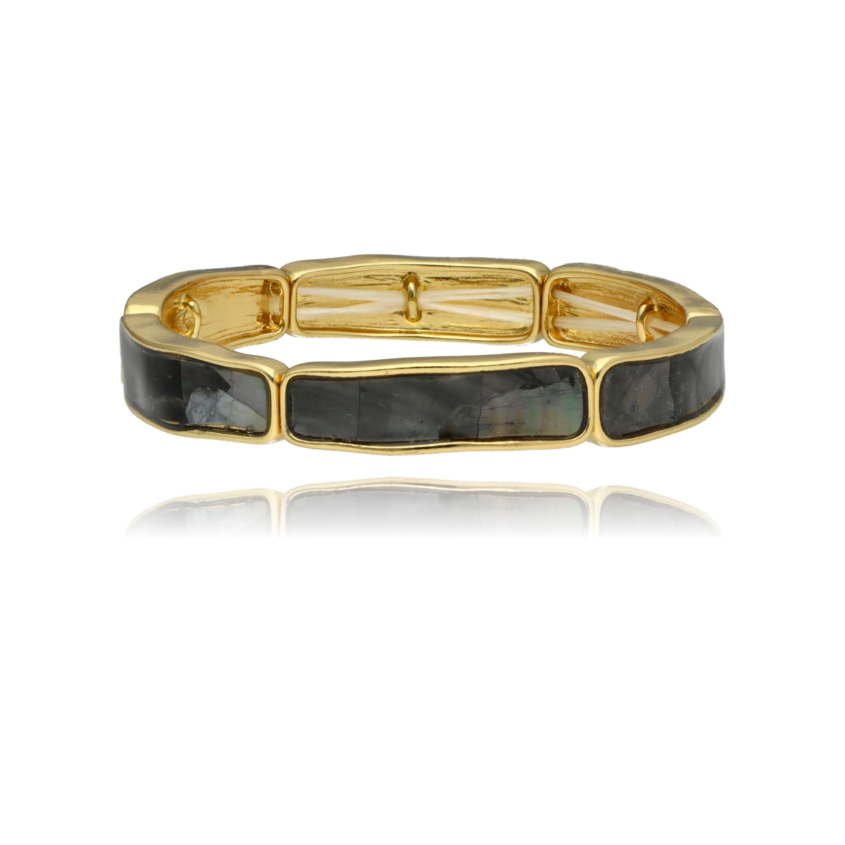 Stylowa bransoletka na elastycznej gumce, wykonana z metalowych, antyalergicznych elementów i muszli naturalnej szarej.