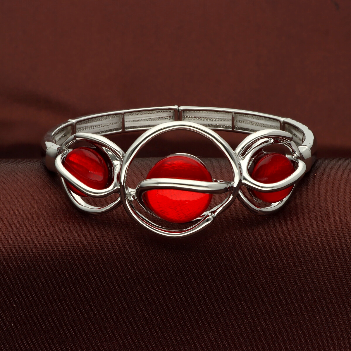 Elegancka bransoletka wykonana z metalu antyalergicznego i żywicy. Rozmiar uniwersalny (na rozciągliwych gumkach). Szukaj do kompletu naszyjnika i kolczyków o tym samym indeksie numerycznym.