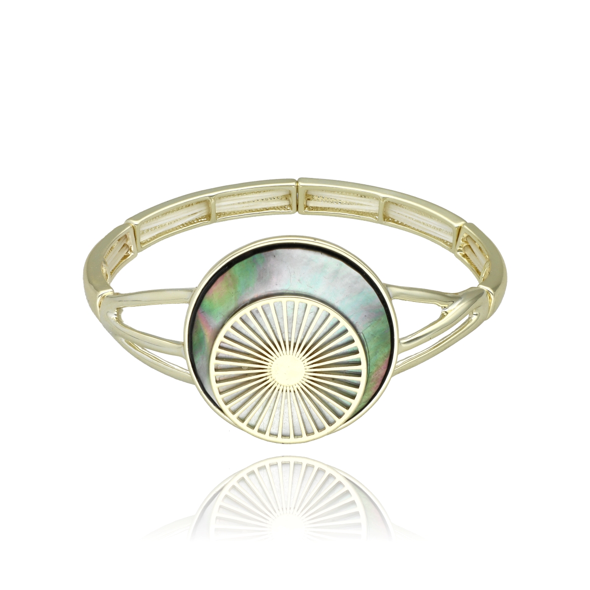 Elegancka bransoletka wykonana z metalu antyalergicznego i muszli naturalnej szarej. Rozmiar uniwersalny (na rozciągliwych gumkach). Szukaj do kompletu naszyjnika i kolczyków o tym samym indeksie numerycznym.