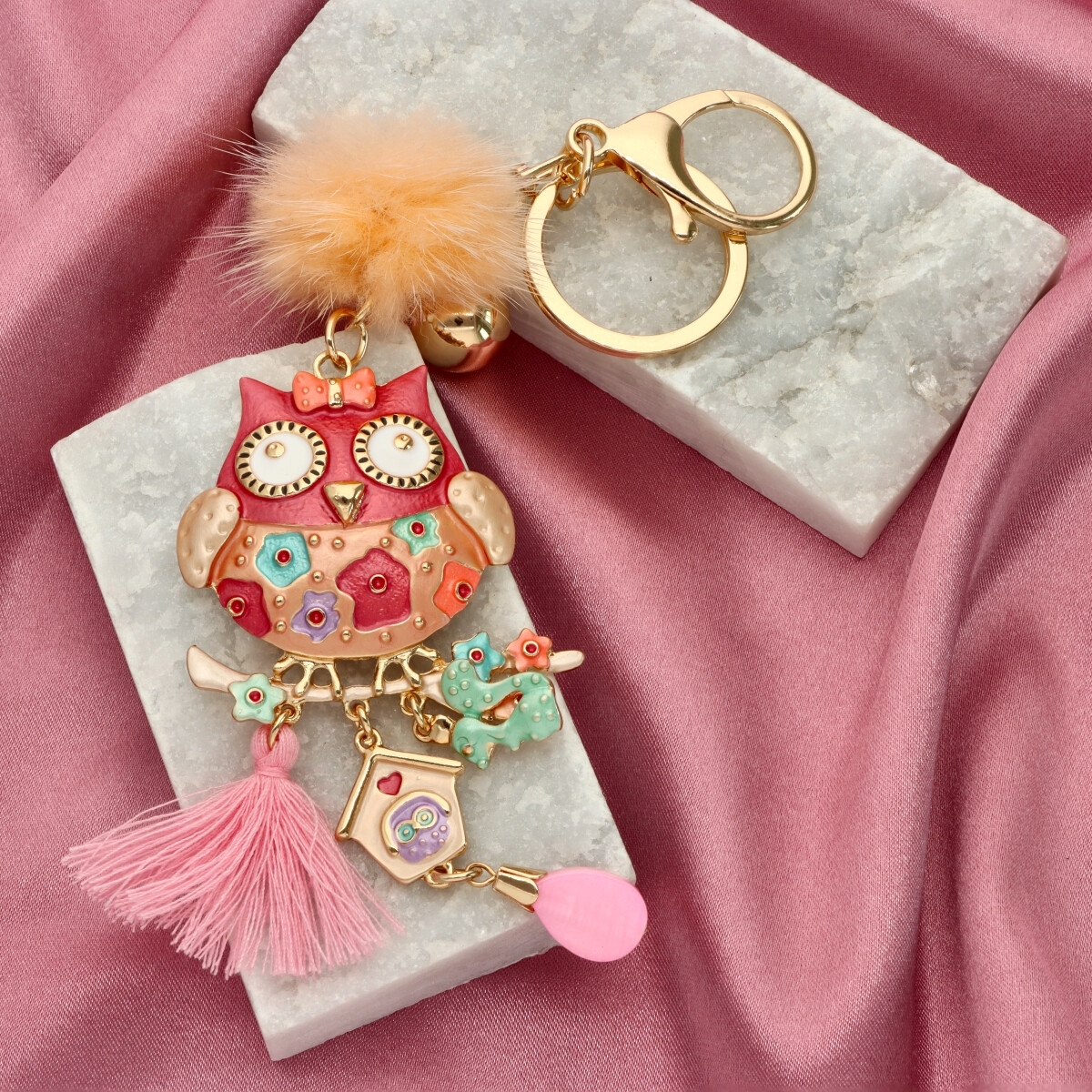 Ten kolorowy brelok w kształcie uroczej sowy to energetyczny i praktyczny dodatek, który ozdobi Twoje klucze, torebkę czy szlufkę od spodni. Wykonany z barwnej emalii i żywicy, zachwyca lekkością i radosnym designem. Najlepiej prezentuje się w komplecie z dopasowaną broszką na magnes, która – dzięki magnetycznemu zapięciu – nie niszczy ubrań i może być przypięta praktycznie wszędzie. Razem tworzą efektowny duet idealny na prezent lub jako detal w stylizacji! Wielkość zawieszki: ok. 6 cm. Długość całkowita: 14 cm.