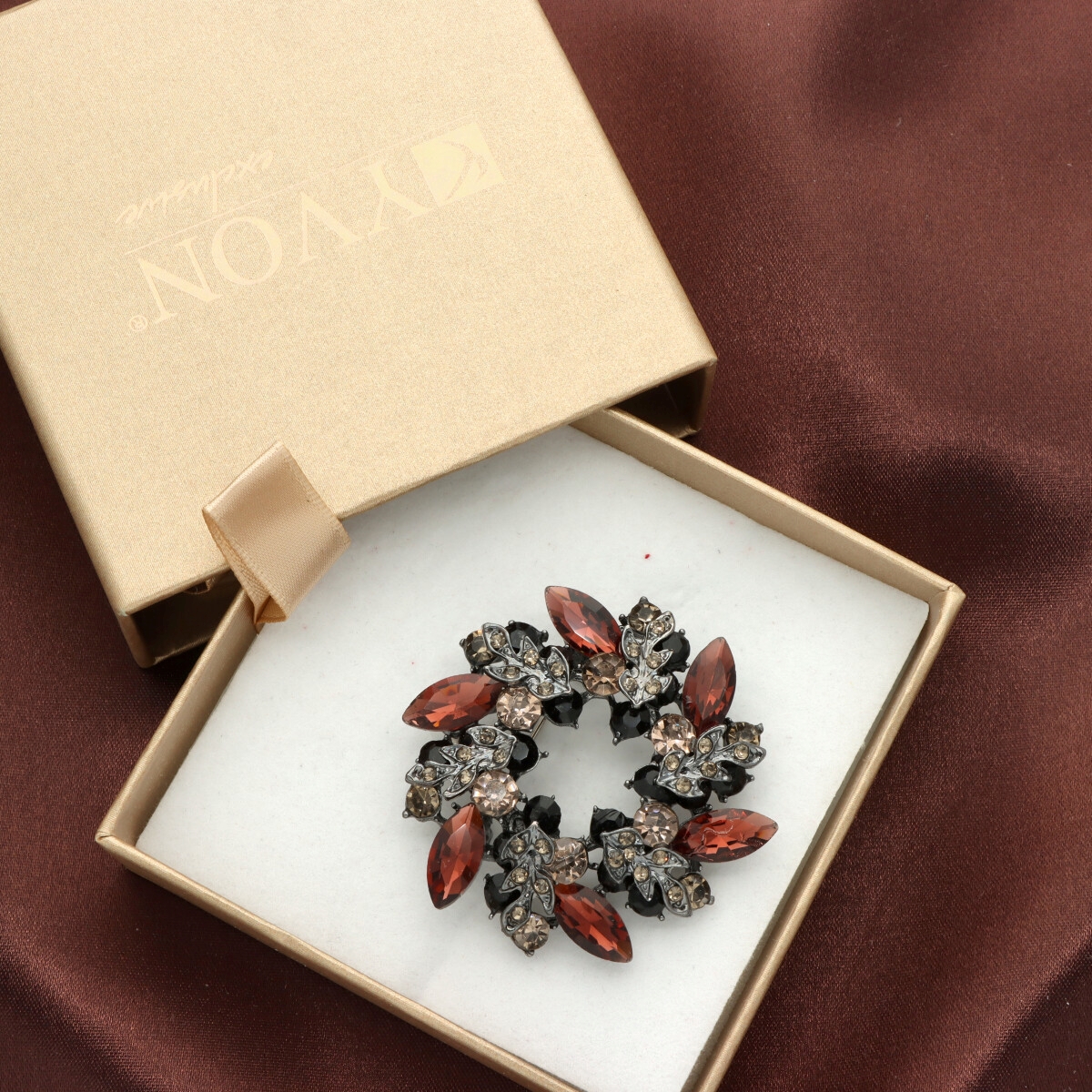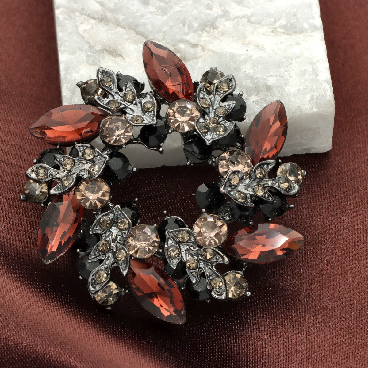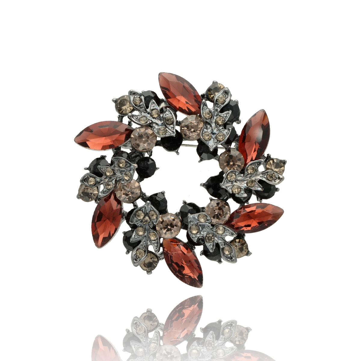Elegancka broszka wykonana z wysokiej jakości szkła fasetowanego oraz metalu hypoalergicznego. Subtelny dodatek, który idealnie wpisuje się w jesienne stylizacje.
