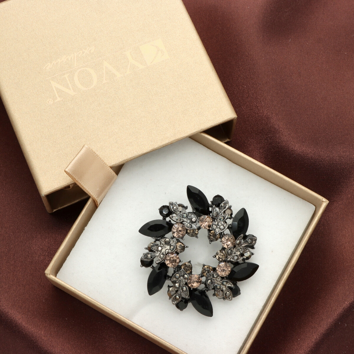 Elegancka broszka wykonana z wysokiej jakości szkła fasetowanego oraz metalu hypoalergicznego. Subtelny dodatek, który idealnie wpisuje się w jesienne stylizacje.