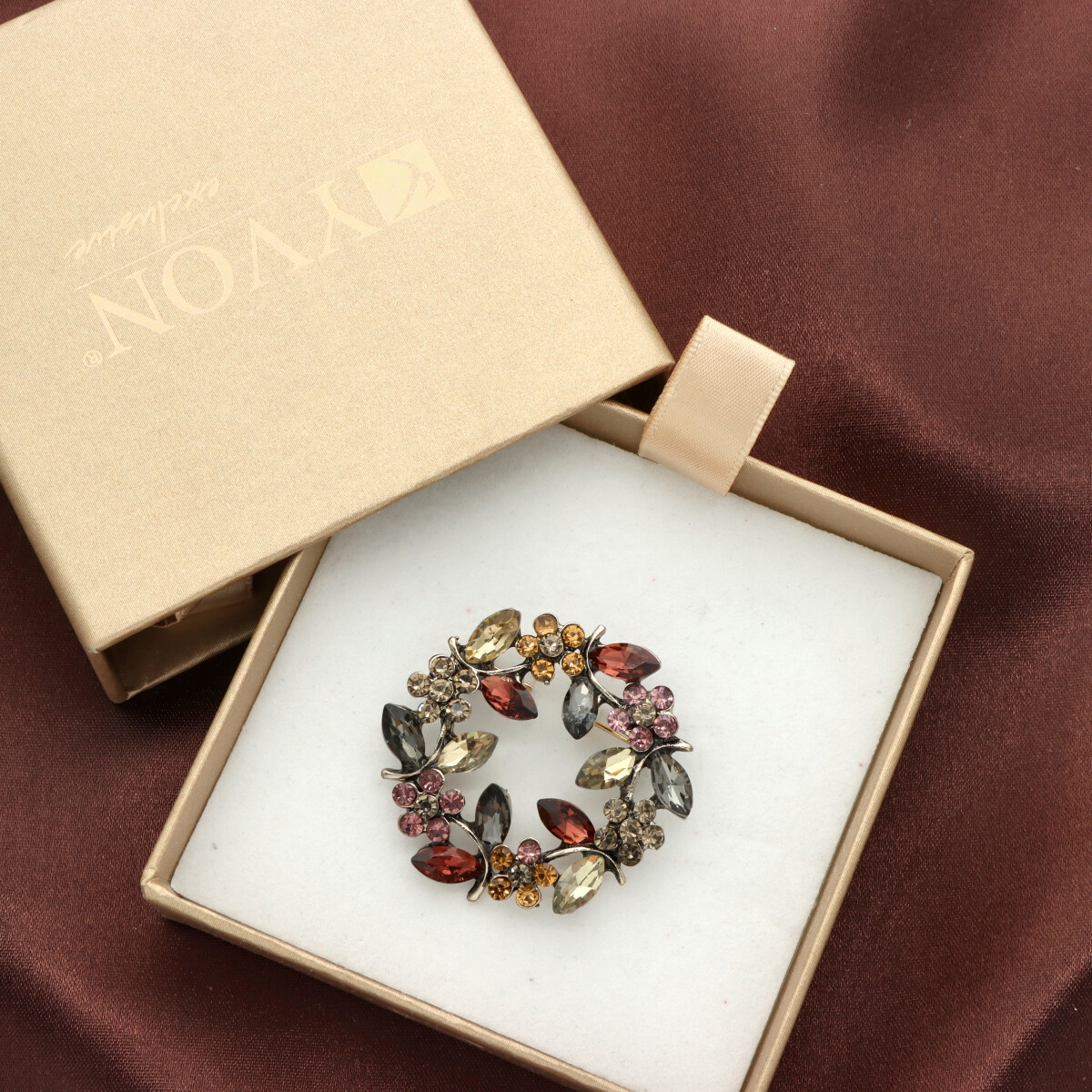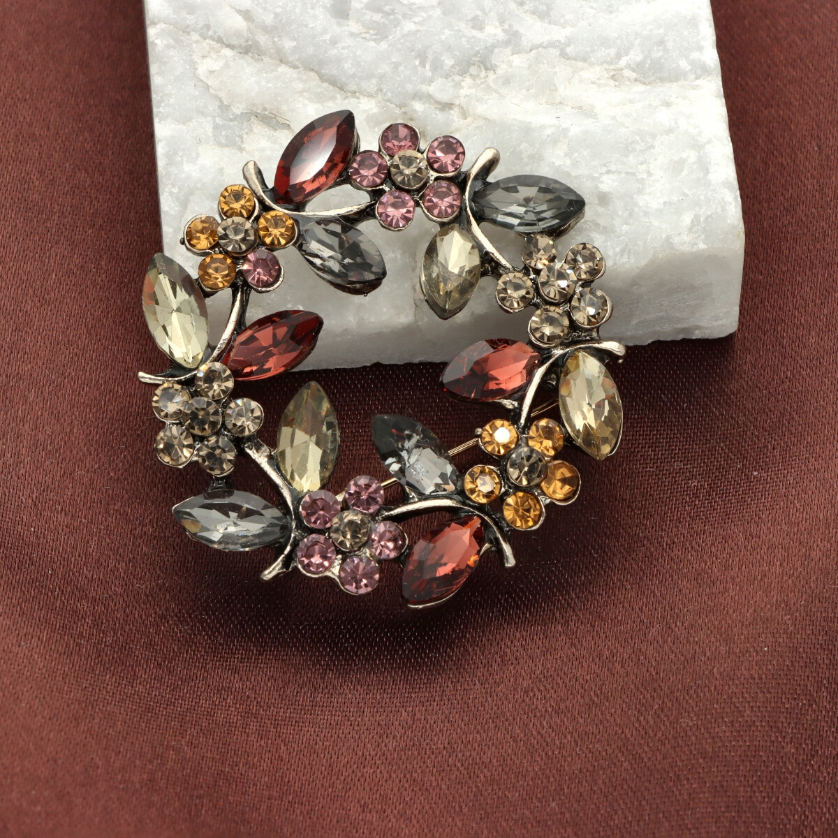 Elegancka broszka wykonana z wysokiej jakości szkła fasetowanego oraz metalu hypoalergicznego. Subtelny dodatek, który idealnie wpisuje się w jesienne stylizacje.