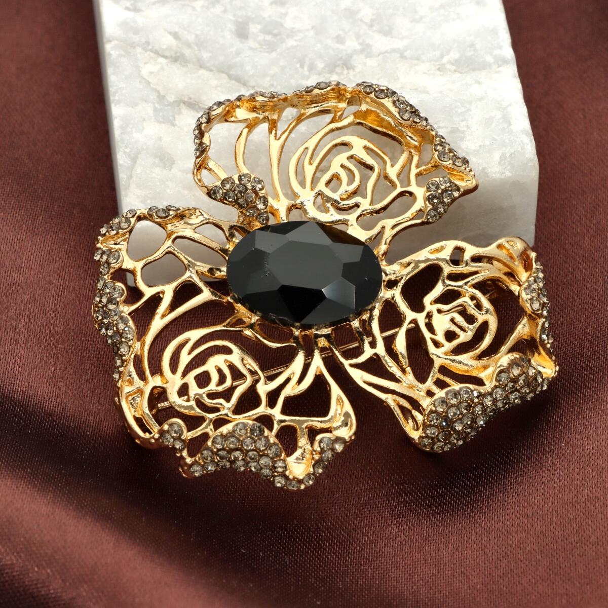Elegancka broszka wykonana z wysokiej jakości szkła fasetowanego oraz metalu hypoalergicznego. Subtelny dodatek, który idealnie wpisuje się w jesienne stylizacje.