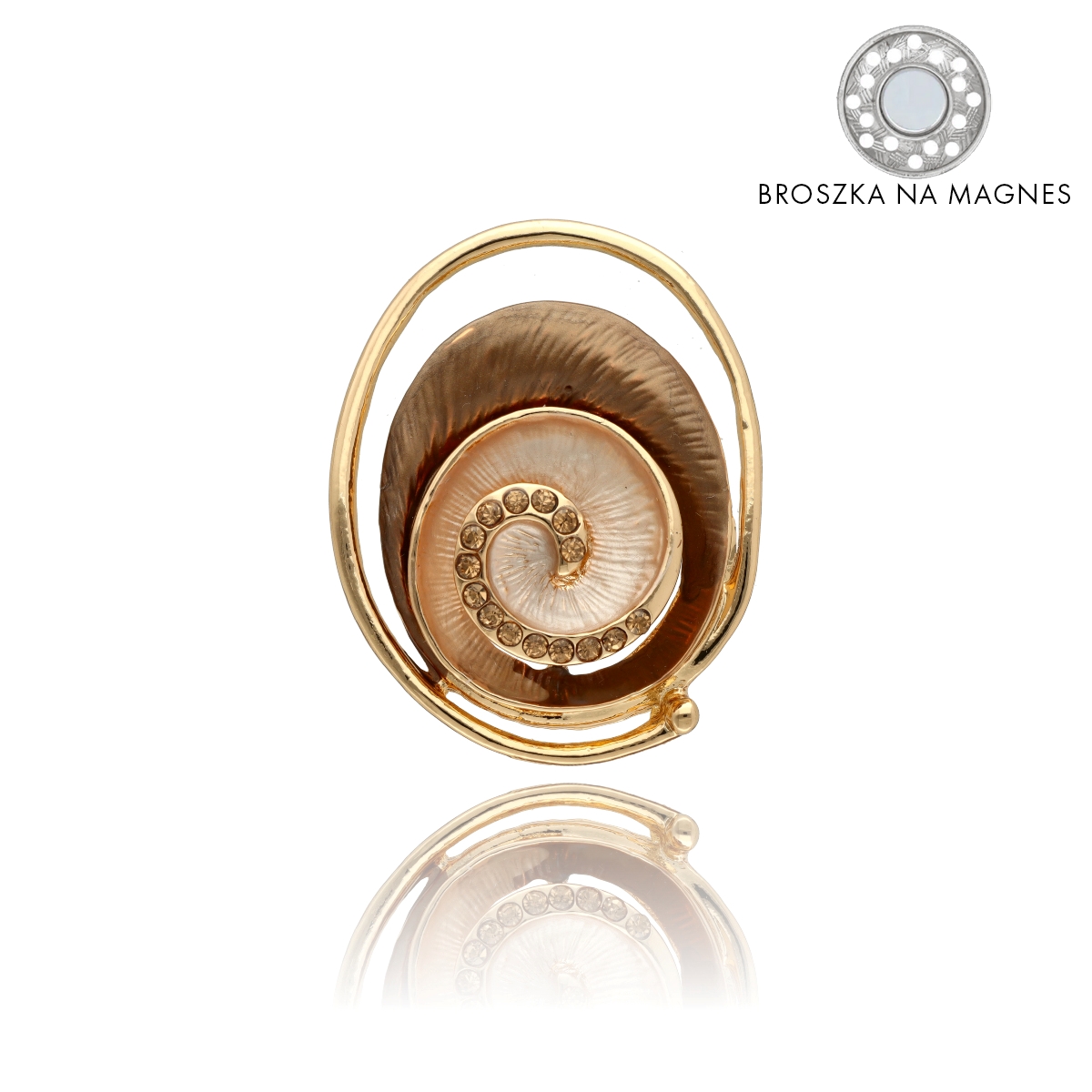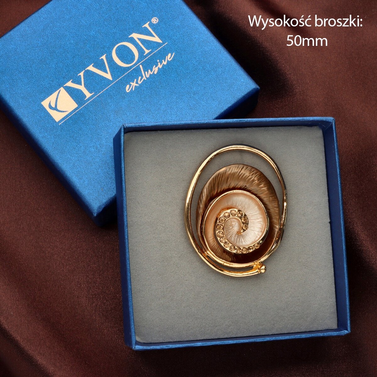 Broszka na magnes z kolekcji YVON biżuteria artystyczna, wykonana z metalu hipoalergicznego i zdobiona ręcznie nanoszoną emalią. Średnica broszki ok. 5 cm. Mocny magnes umożliwia przypięcie bez ryzyka uszkodzenia tkaniny – idealna do płaszczy, szali i torebek. Każdy egzemplarz pakowany jest w eleganckie pudełko prezentowe YVON.