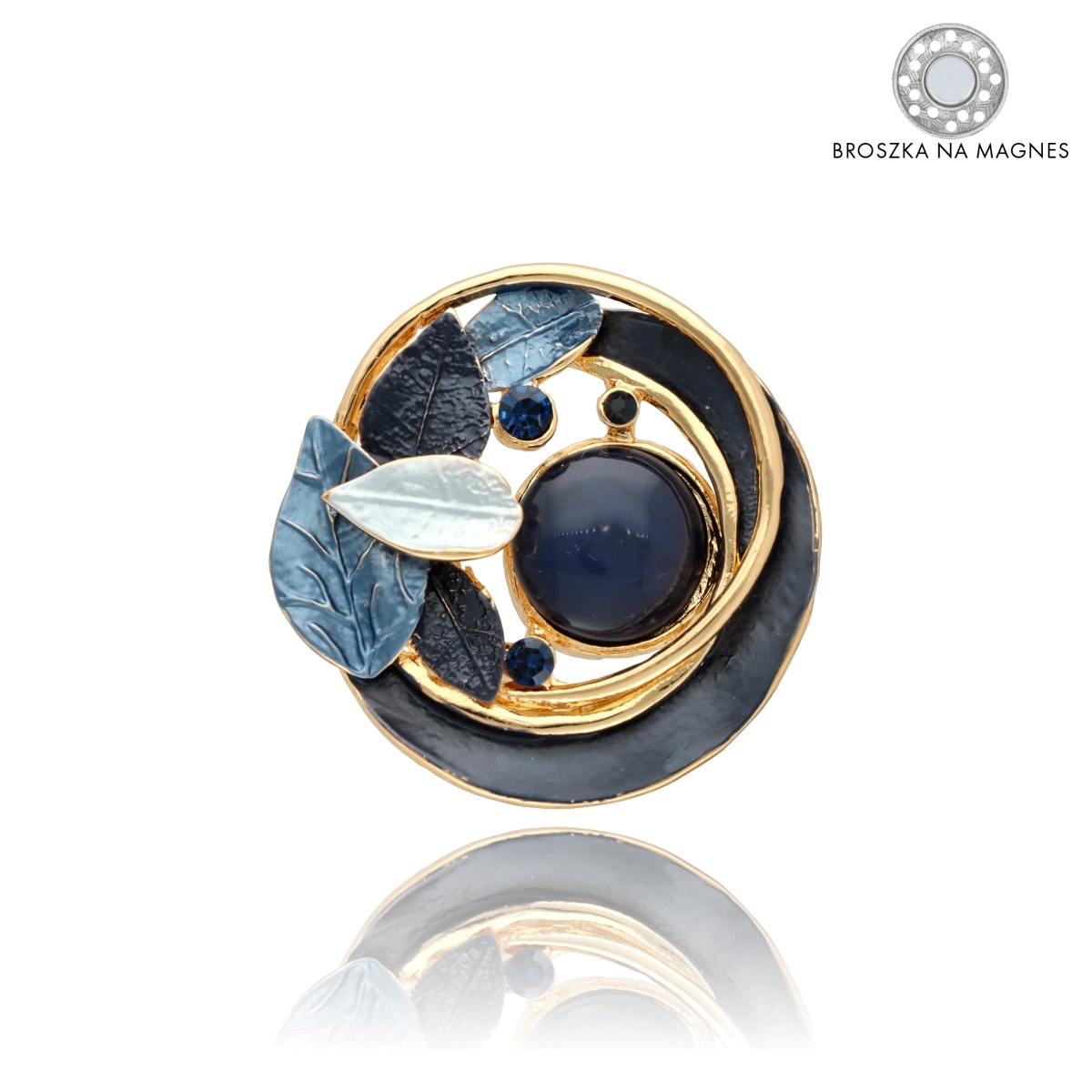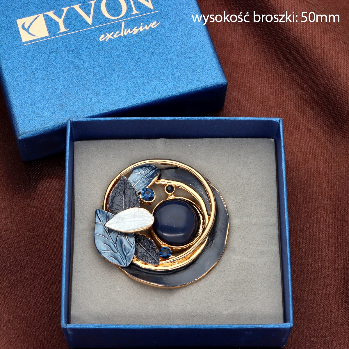 Broszka na magnes z kolekcji YVON biżuteria artystyczna, wykonana z metalu hipoalergicznego, żywicy i zdobiona ręcznie nanoszoną emalią. Średnica broszki ok. 5 cm. Mocny magnes umożliwia przypięcie bez ryzyka uszkodzenia tkaniny – idealna do płaszczy, szali i torebek. Każdy egzemplarz pakowany jest w eleganckie pudełko prezentowe YVON.