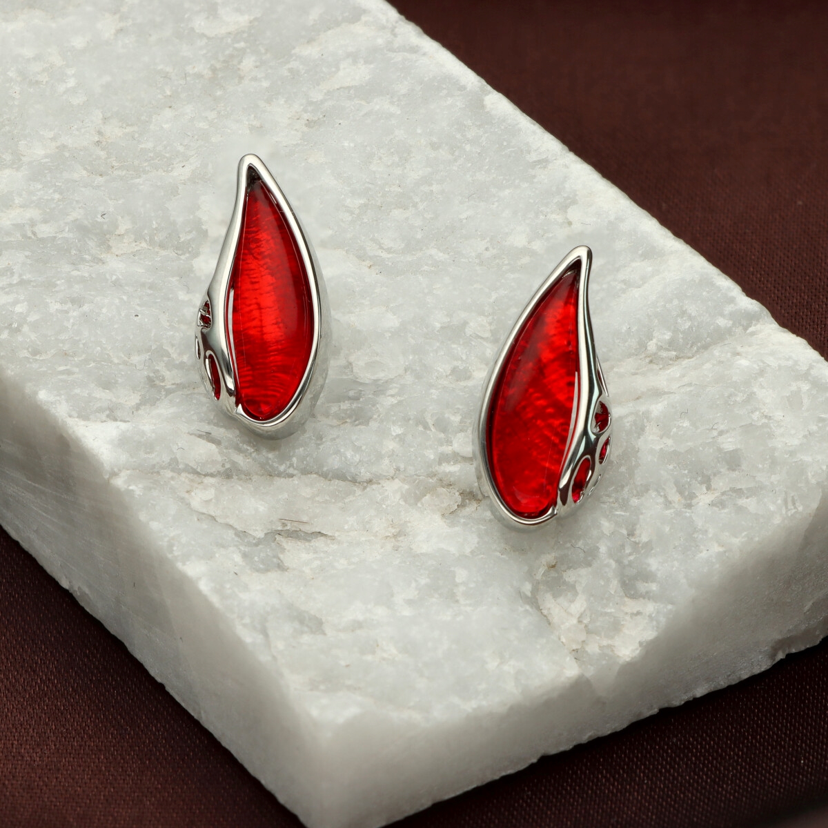 Delikatne kolczyki wykonane z metalu antyalergicznego i żywicy. Długosć ok. 2 cm. Szukaj do kompletu bransoletki i naszyjnika o tym samym indeksie numerycznym.