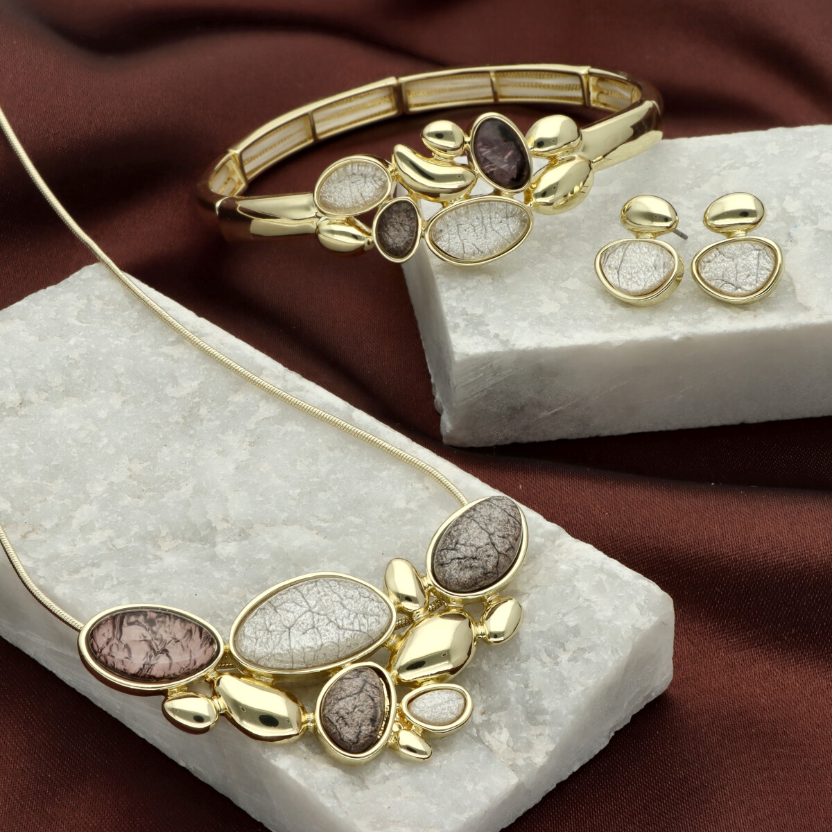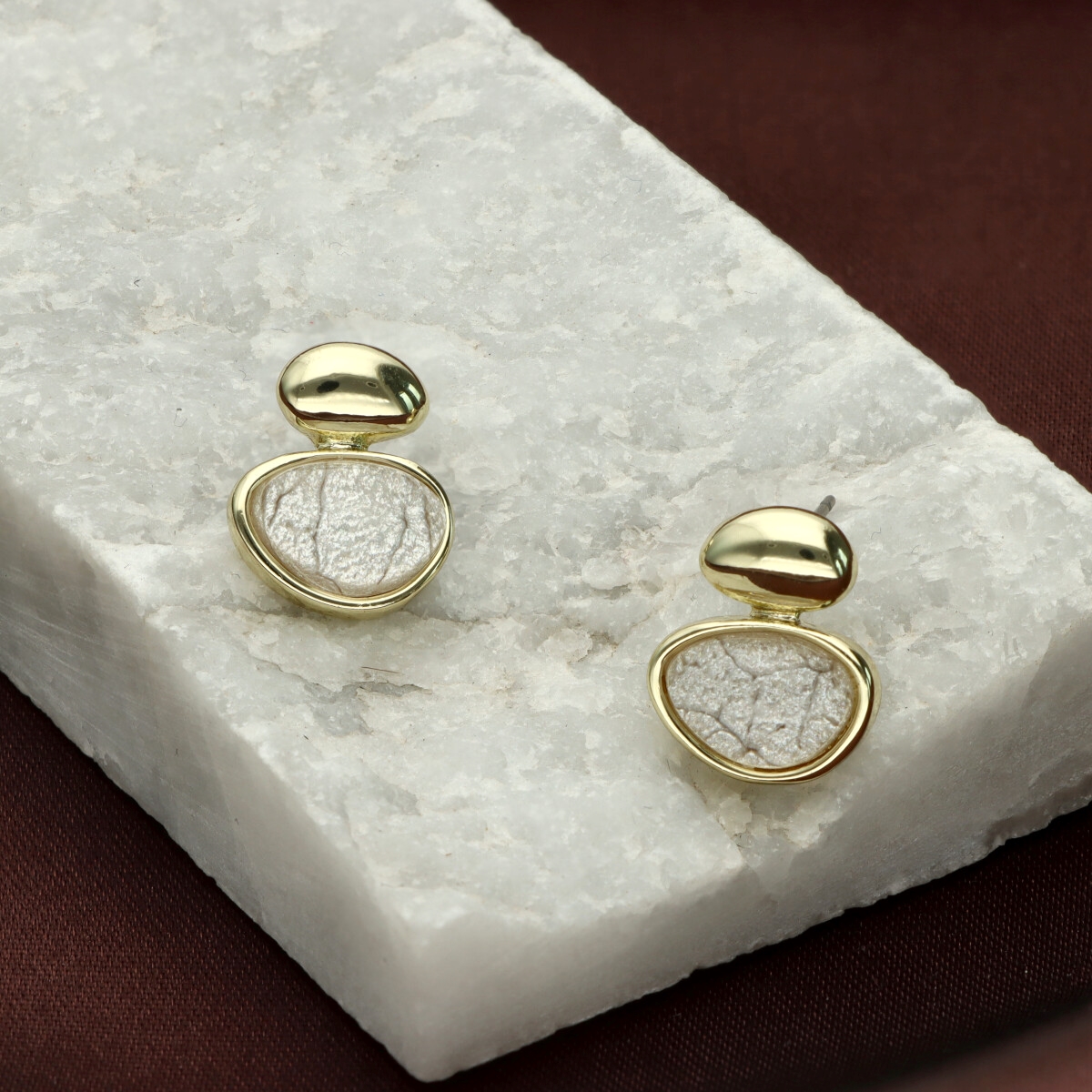 Eleganckie kolczyki wykonane z metalu antyalergicznego i żywicy z efektem głębi. Długosć ok. 2 cm. Szukaj do kompletu bransoletki i naszyjnika o tym samym indeksie numerycznym.