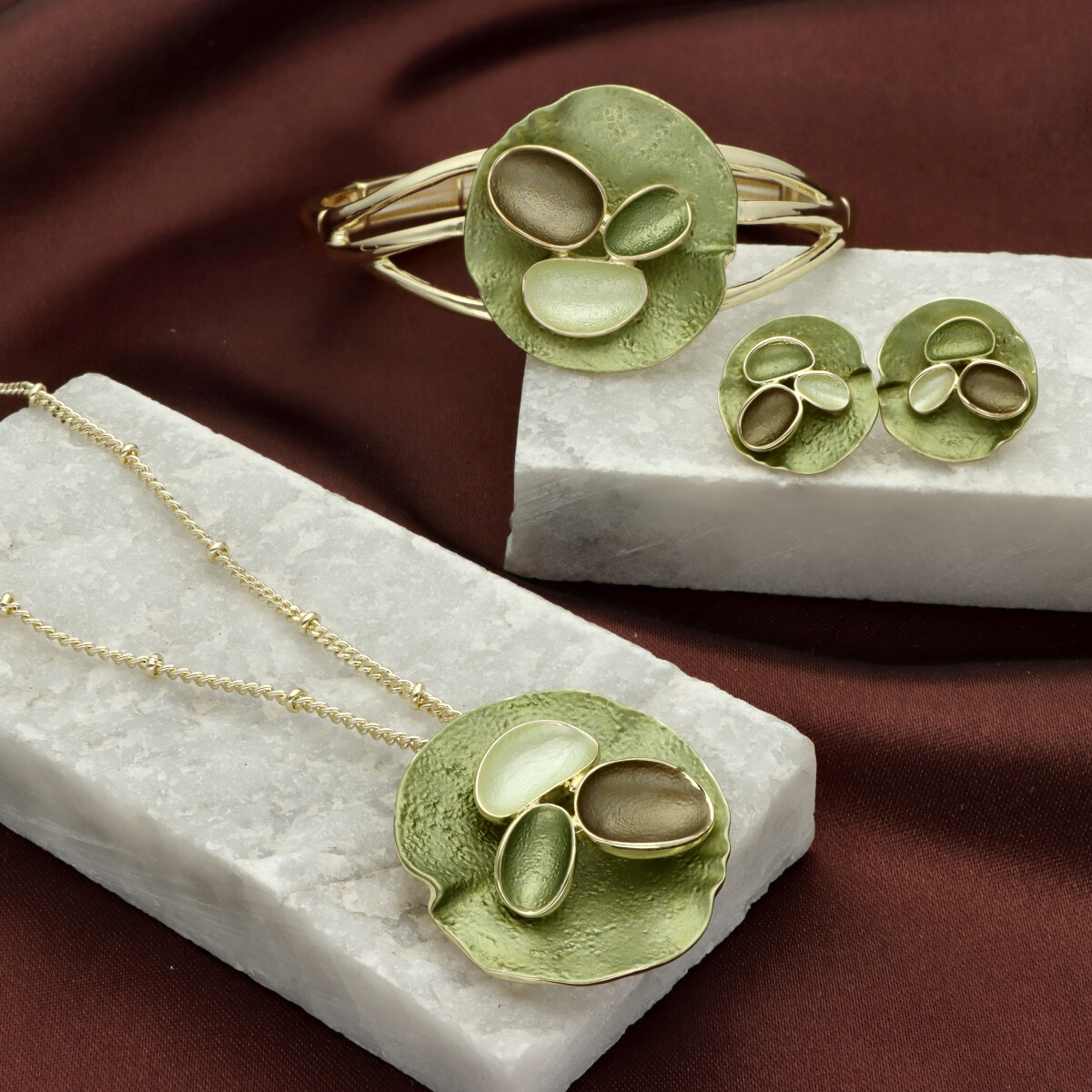 Eleganckie kolczyki wykonane z metalu antyalergicznego i emalii. Długosć ok. 2 cm. Szukaj do kompletu bransoletki i naszyjnika o tym samym indeksie numerycznym.