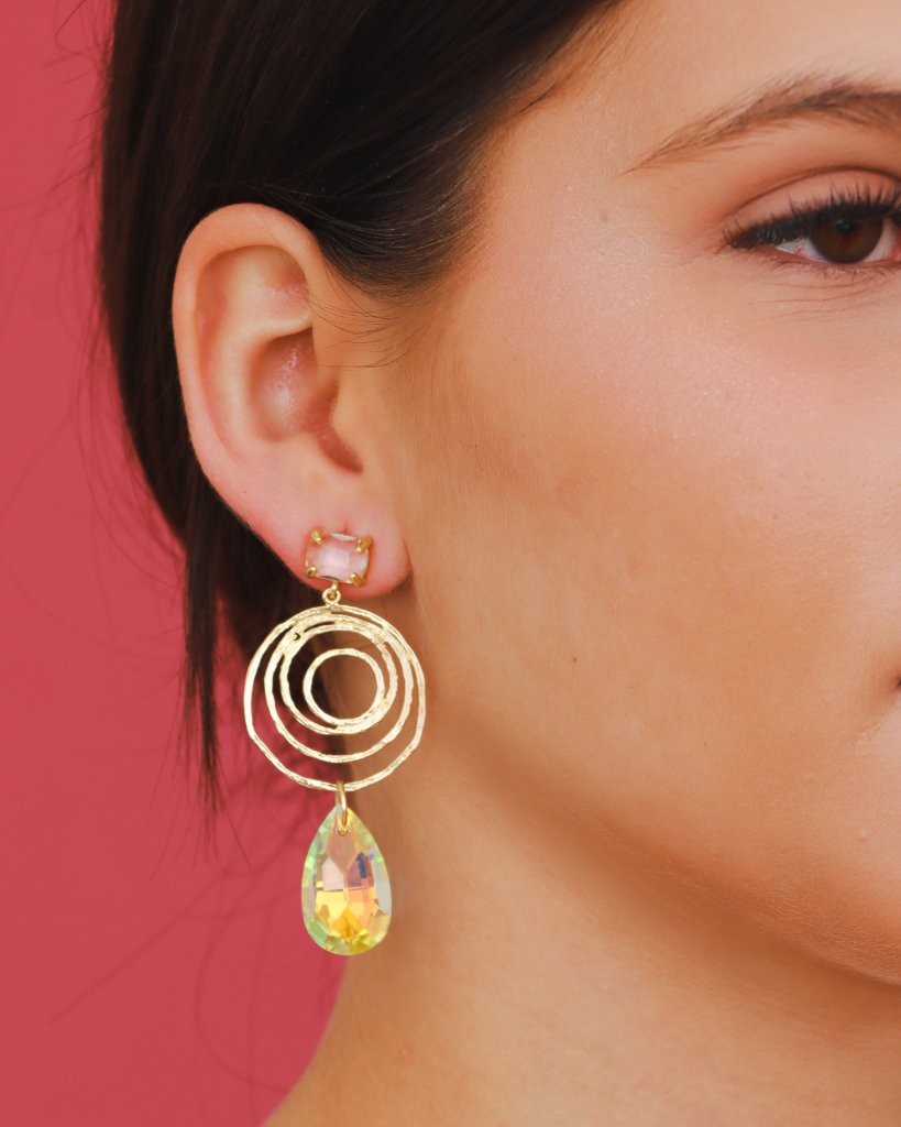 Kolczyki Orbitea to połączenie subtelnej klasyki z blaskiem fasetowanego szkła. Wykonane ze szkła szlifowanego z efektem ombre, w oprawie z metalu antyalergicznego. Długość ok. 6,5 cm. Całość sprawia, że pięknie eksponują się na uchu, dodając elegancji zarówno wieczorowym, jak i codziennym stylizacjom.