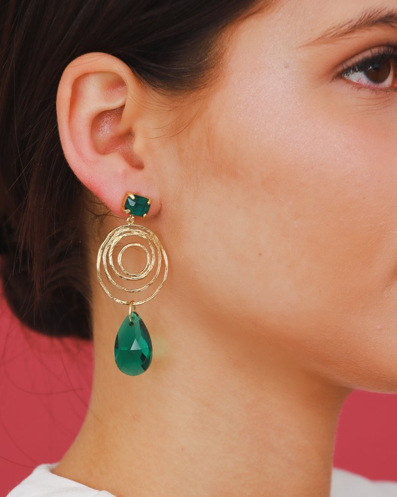 Kolczyki Orbitea to połączenie subtelnej klasyki z blaskiem fasetowanego szkła. Wykonane ze szkła szlifowanego z efektem ombre, w oprawie z metalu antyalergicznego. Długość ok. 6,5 cm. Całość sprawia, że pięknie eksponują się na uchu, dodając elegancji zarówno wieczorowym, jak i codziennym stylizacjom.