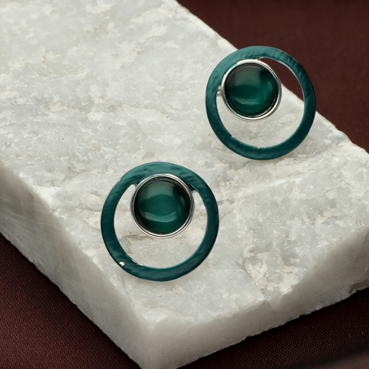 Eleganckie kolczyki wykonane z metalu antyalergicznego, kwarcu i emalii. Długosć ok. 2 cm. Szukaj do kompletu bransoletki i naszyjnika o tym samym indeksie numerycznym.