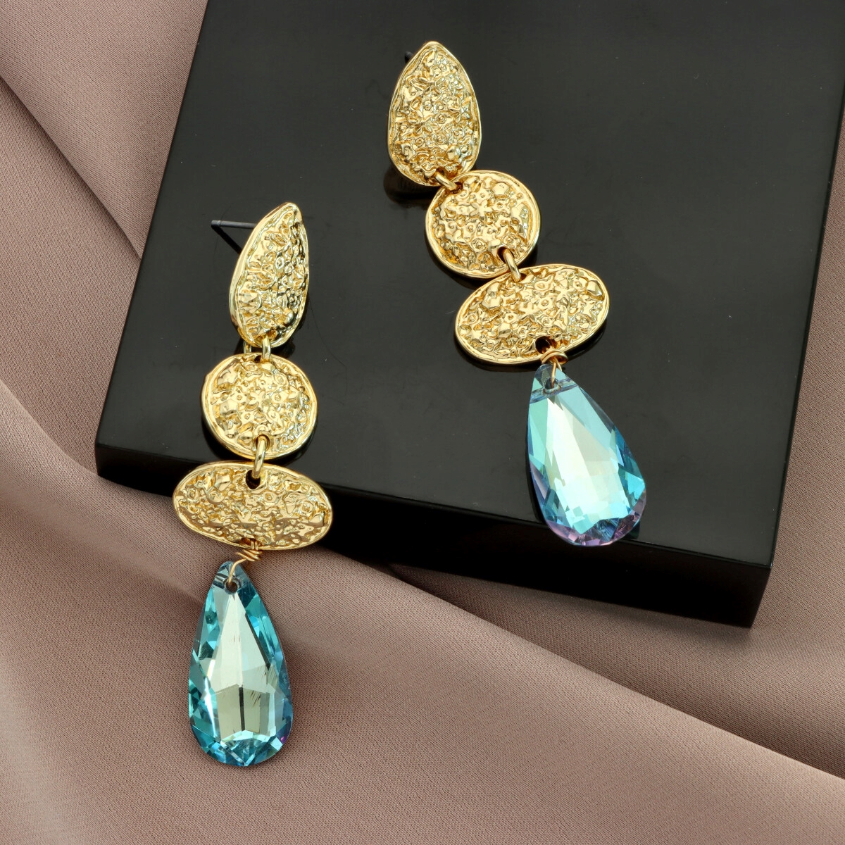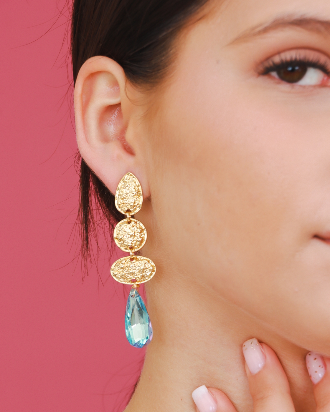 Kolczyki Sol d'Oro to połączenie subtelnej klasyki z blaskiem fasetowanego szkła. Wykonane z inkrustowanego hipoalergicznego metalu i szkła szlifowanego. Długość ok. 7 cm. Całość sprawia, że pięknie eksponują się na uchu, dodając elegancji zarówno wieczorowym, jak i codziennym stylizacjom.