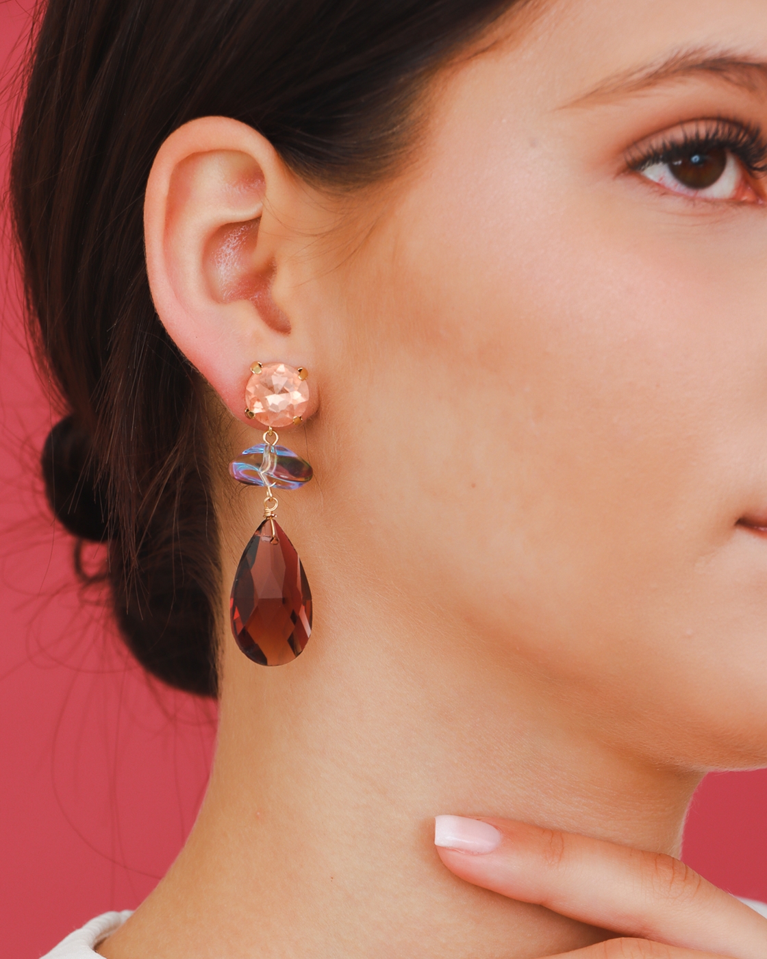 Kolczyki Stella Drop to połączenie subtelnej klasyki z blaskiem fasetowanego szkła. Wykonane ze szkła szlifowanego z efektem ombre, w oprawie z metalu antyalergicznego. Długość ok. 5,5 cm. Całość sprawia, że pięknie eksponują się na uchu, dodając elegancji zarówno wieczorowym, jak i codziennym stylizacjom.