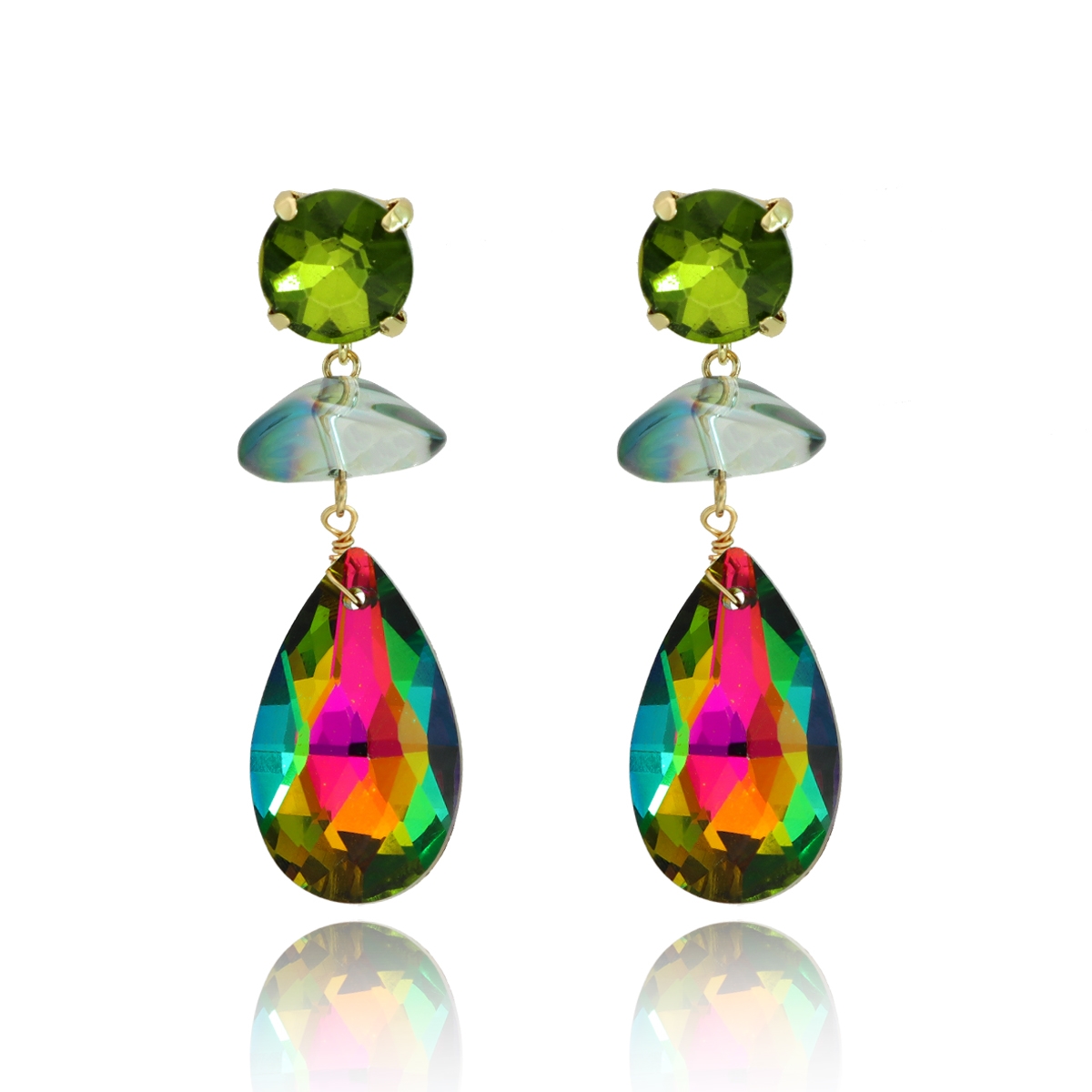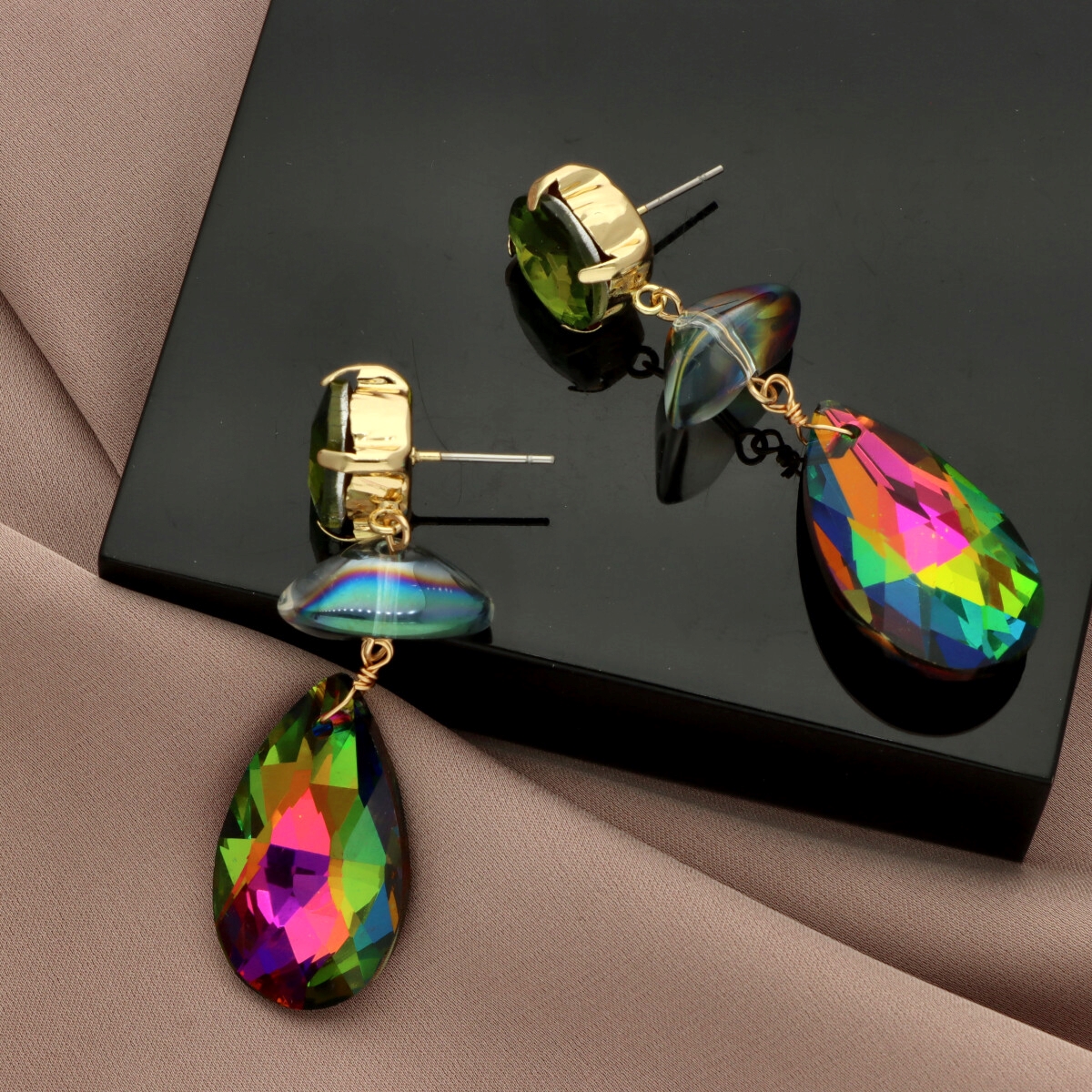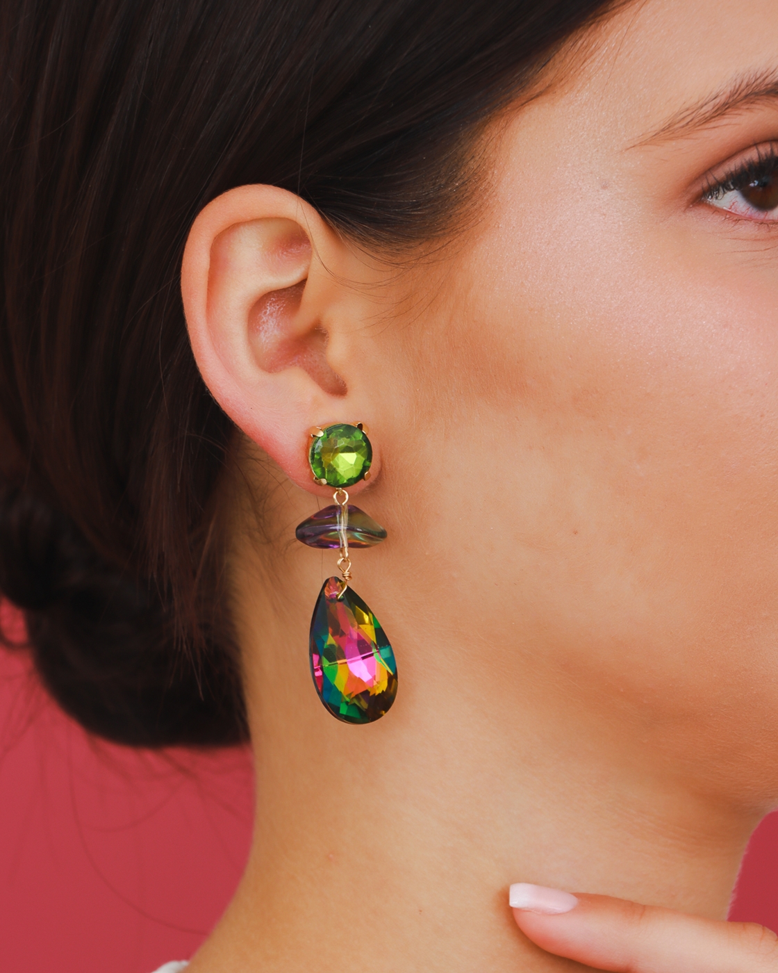 Kolczyki Stella Drop to połączenie subtelnej klasyki z blaskiem fasetowanego szkła. Wykonane ze szkła szlifowanego z efektem ombre, w oprawie z metalu antyalergicznego. Długość ok. 5,5 cm. Całość sprawia, że pięknie eksponują się na uchu, dodając elegancji zarówno wieczorowym, jak i codziennym stylizacjom.