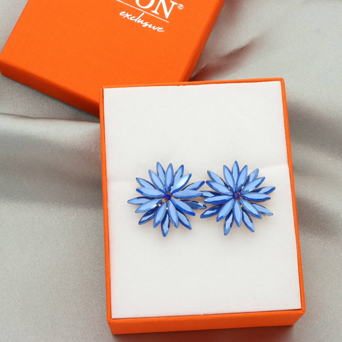 Efektowne letnie kolczyki z dymionego szkła fasetowanego. Soczysta, letnia kolorystyka. Biżuteria antyalergiczna. Długość ok. 3 cm. W pudełeczku (gratis).