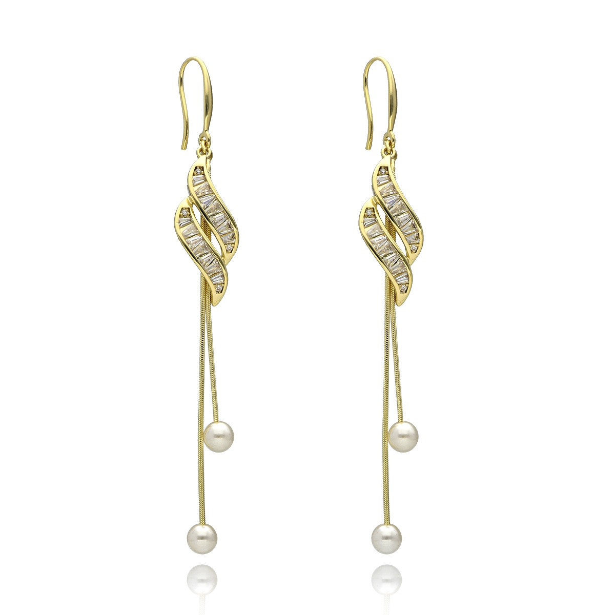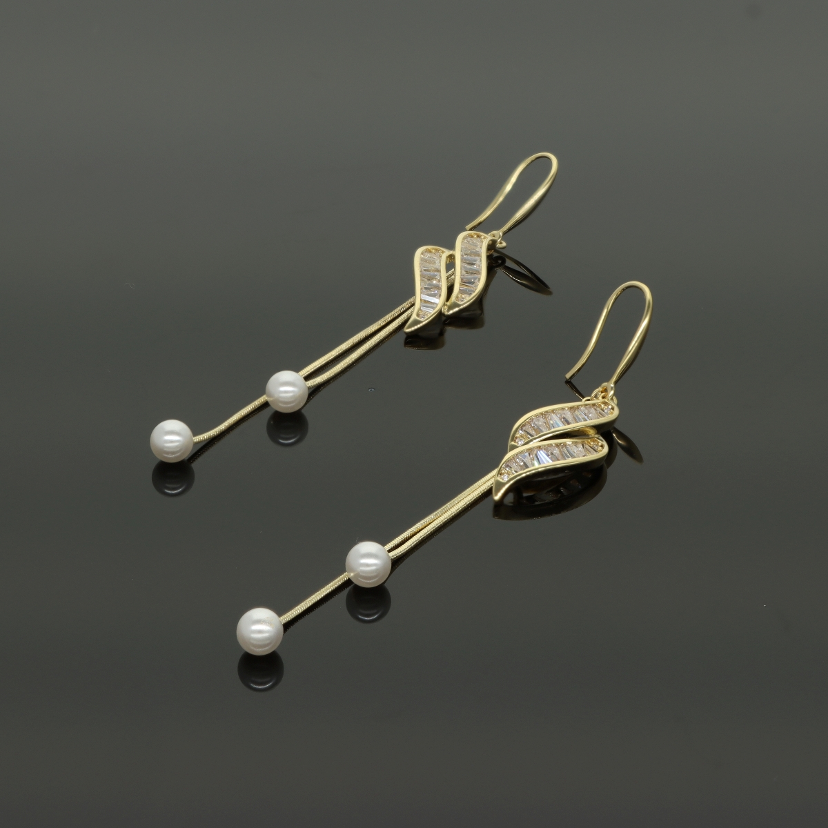 Kolczyki wieczorowe wykonane z antyalergicznego mosiądzu i cyrkonii oraz perły shell.