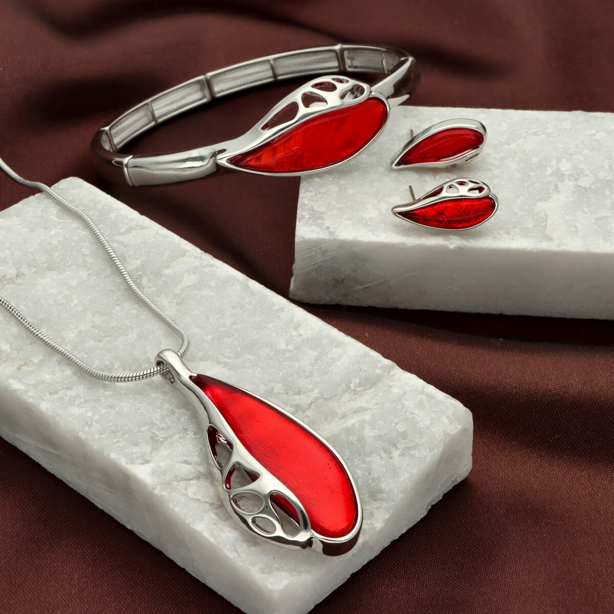 Długi, elegancki naszyjnik wykonany z antyalergicznego metalu i kolorowej żywicy. Długość 70 cm + 8 cm regulacja. Szukaj do kompletu bransoletki i kolczyków o tym samym indeksie numerycznym.