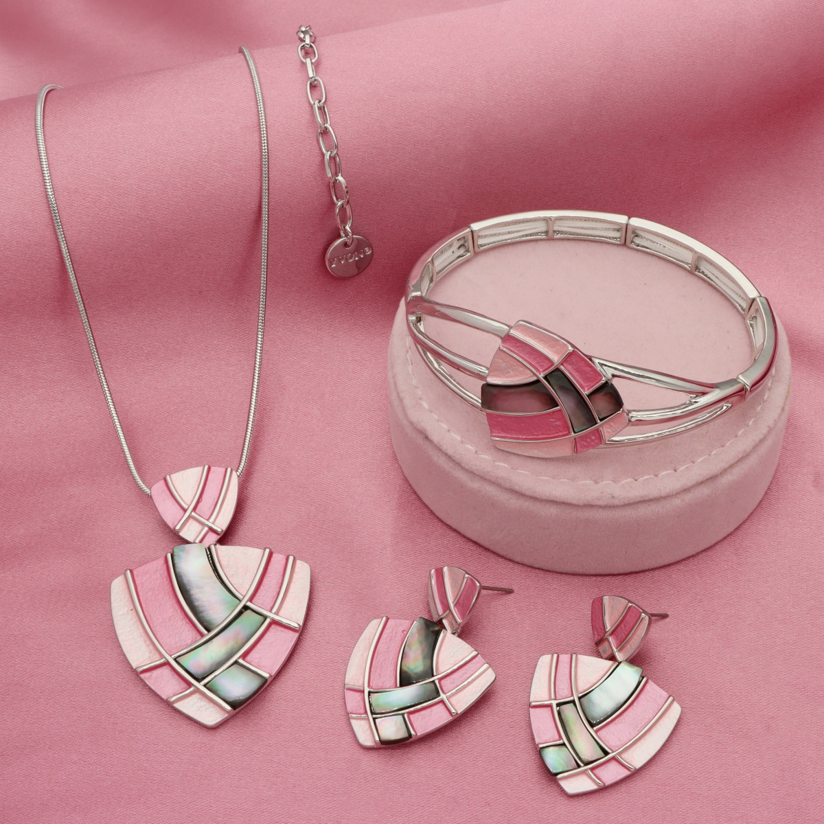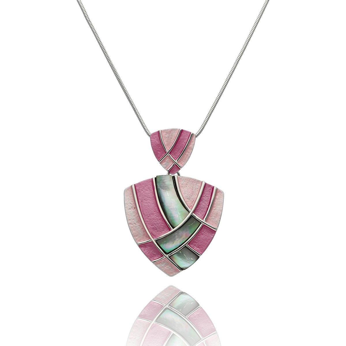 Elegancki dekoltowy naszyjnik wykonany z antyalergicznego metalu i muszli naturalnej szarej. Długość 45 cm + 8cm regulacja. Szukaj do kompletu bransoletki i kolczyków o tym samym indeksie numerycznym.