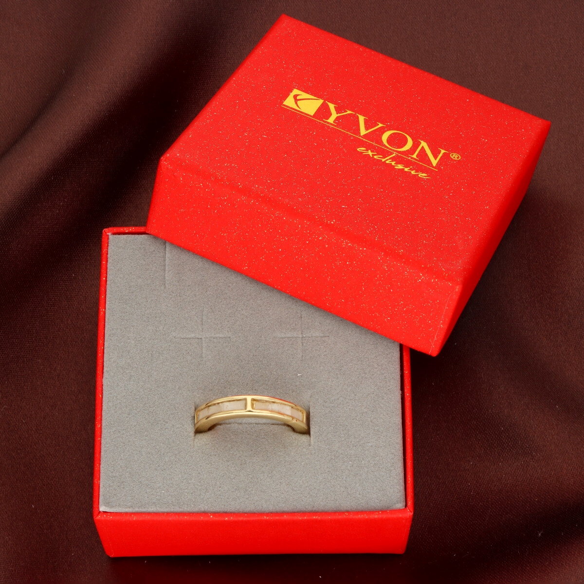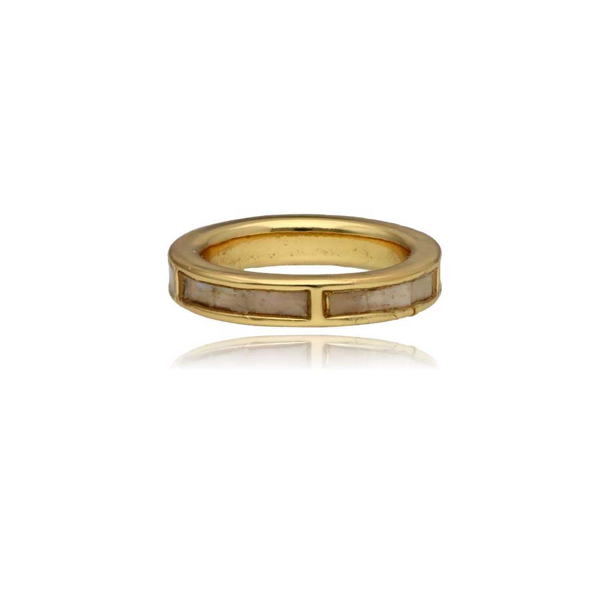 Elegancki pierścionek / damski sygnet wykonany z metalu antyalergicznego – bezpieczny nawet dla wrażliwej skóry, ozdobiony naturalną muszlą mleczną.