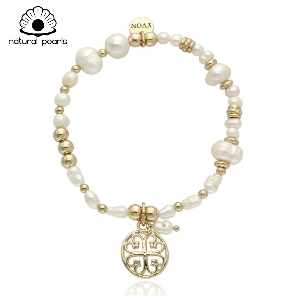 Bransoletka wykonana z NATURALNYCH PEREŁ SŁODKOWODNYCH. Każda perła ma unikalny kształt i delikatny połysk, charakterystyczny dla pereł naturalnych. Elementy metalowe wykonane z hipoalergicznego metalu (mosiądz). Bransoletka osadzona na rozciągliwej gumce, dzięki czemu łatwo dopasowuje się do nadgarstka. Materiał: – perły naturalne słodkowodne – hipoalergiczny metal – mosiądz pozłacany