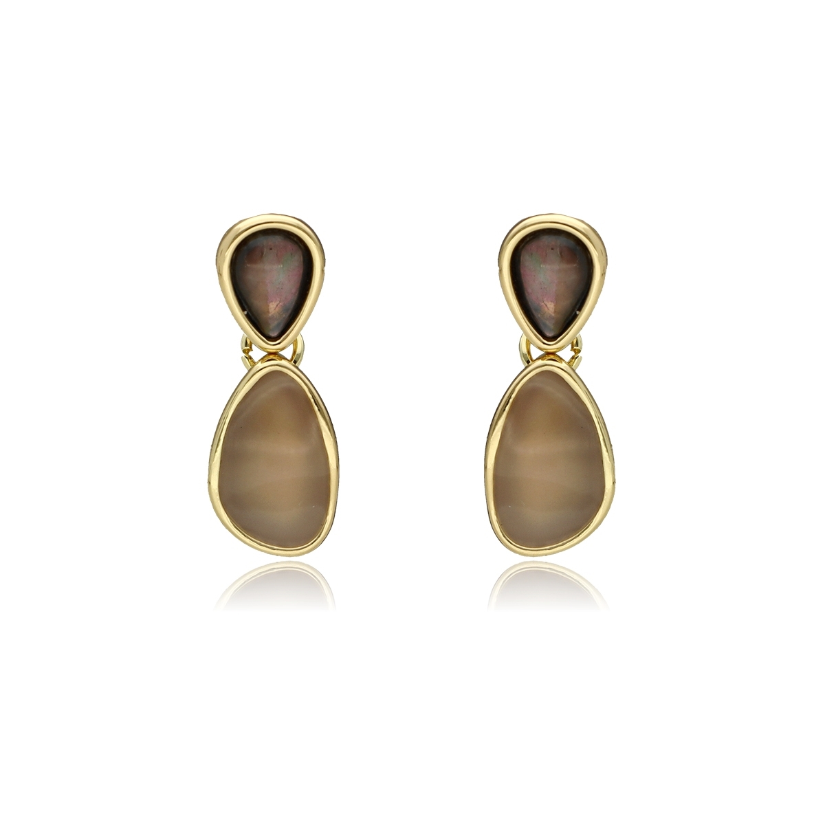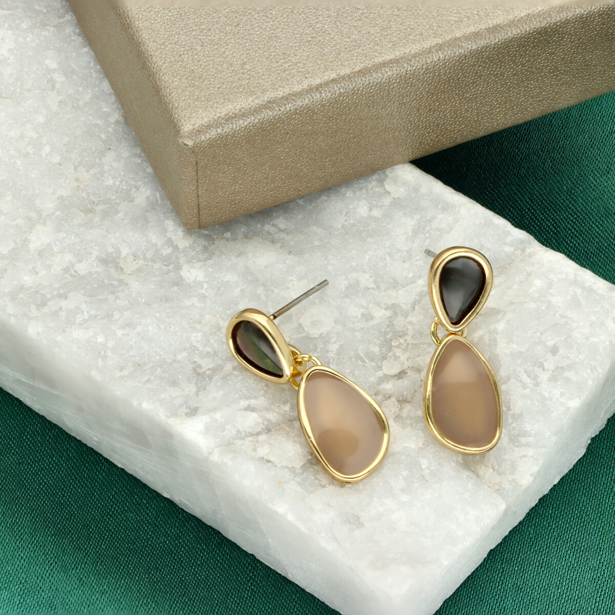 Eleganckie kolczyki wykonane z wysokiej jakości metalu antyalergicznego, zdobione kolorową żywicą, emalią oraz naturalną muszlą abalone. Ich subtelna długość (ok. 3 cm) sprawia, że są idealnym wyborem do codziennych i wieczorowych stylizacji.