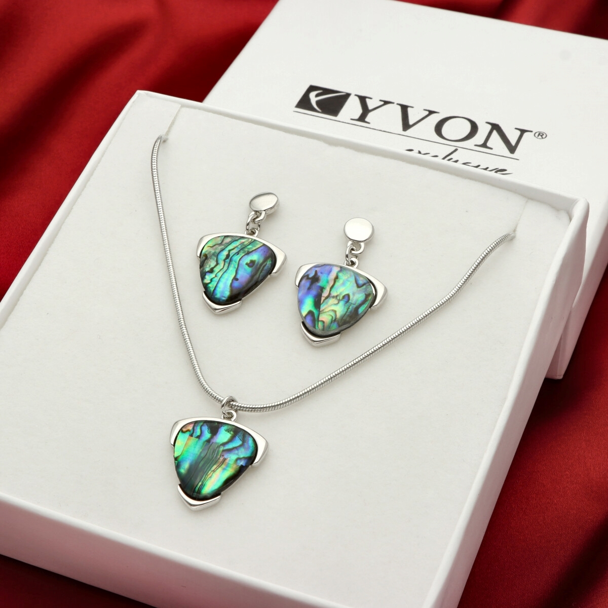 Komplet biżuterii składający się z naszyjnika oraz kolczyków, zapakowany w pudełko prezentowe. Wykonany z hipoalergicznego metalu oraz muszli ABALON. Lekka forma zapewnia komfort codziennego użytkowania. Długość naszyjnika wynosi 42 cm, dodatkowo 8 cm zawieszki. Długość kolczyków to około 3 cm. Specyfikacja: zestaw: naszyjnik + kolczyki materiał: hipoalergiczny metal, muszla abalon długość naszyjnika: 42 cm + 8 cm zawieszka długość kolczyków: ok. 3 cm pudełko prezentowe w zestawie