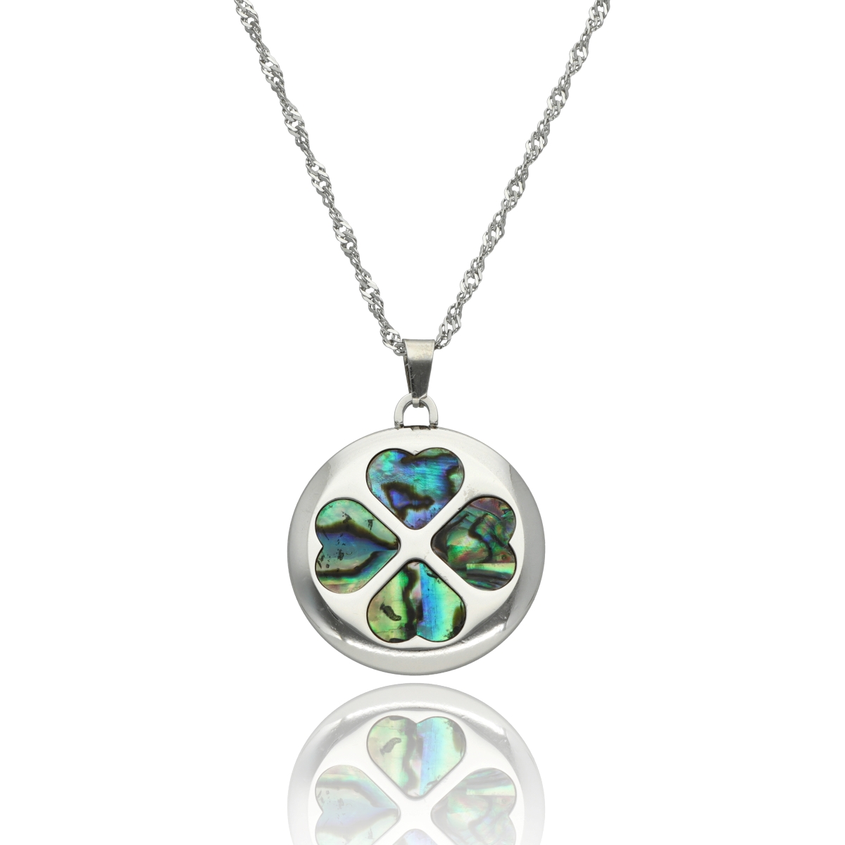 Naszyjnik typu medalion wykonany z muszli naturalnej ABALONE, wysokogatunkowej, hipoalergicznej stali szlachetnej 316L. Charakteryzuje się wyjątkową odpornością na ścieranie, zmatowienie i działanie wilgoci.