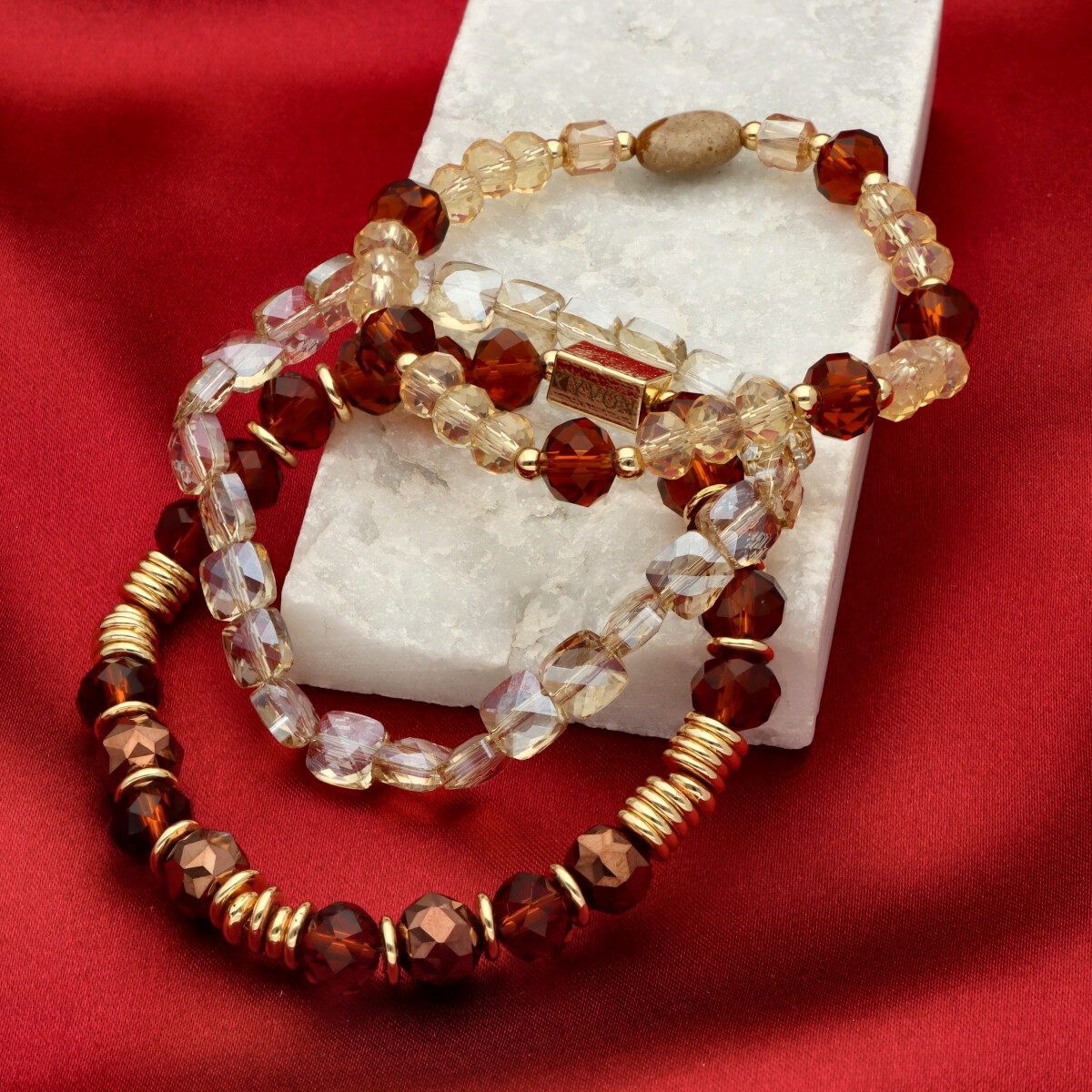 Zestaw trzech bransoletek z KAMIENIAMI NATURALNYMI (BRONZYT), który łączy w sobie klasyczną elegancję i najwyższą jakość wykonania. Każdy element został starannie dobrany – od antyalergicznego mosiądzu, przez elementy z kamieni, aż po misternie fasetowane koraliki z kryształu górskiego. Subtelne połączenie tych materiałów tworzy niepowtarzalny, ponadczasowy dodatek. Bransoletki zapakowane są w eleganckie pudełeczko z miękką poduszeczką, co sprawia, że zestaw doskonale nadaje się na prezent.