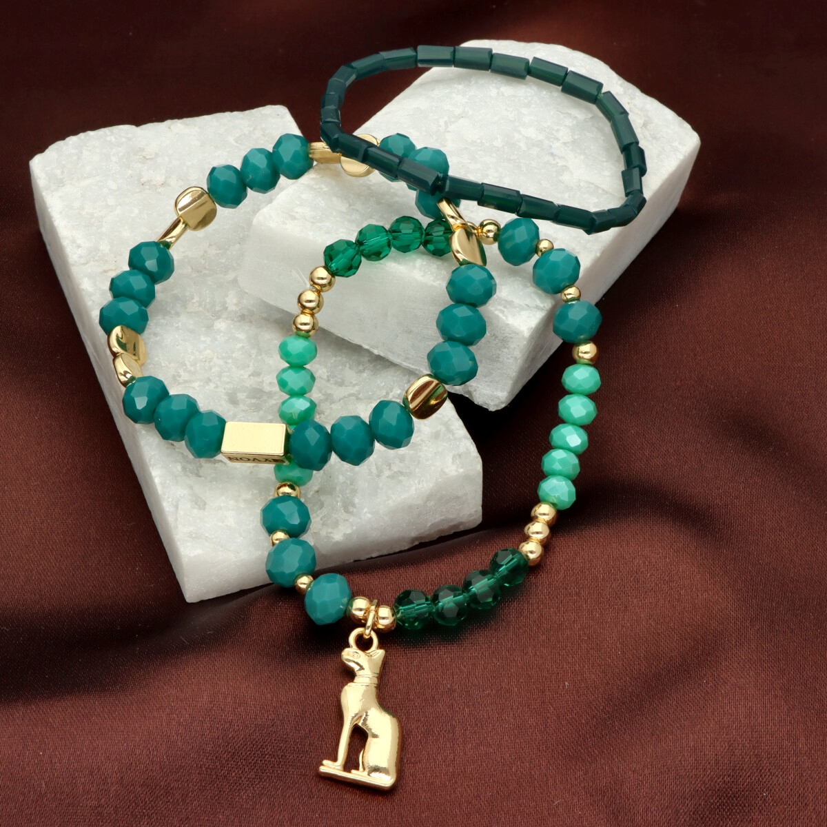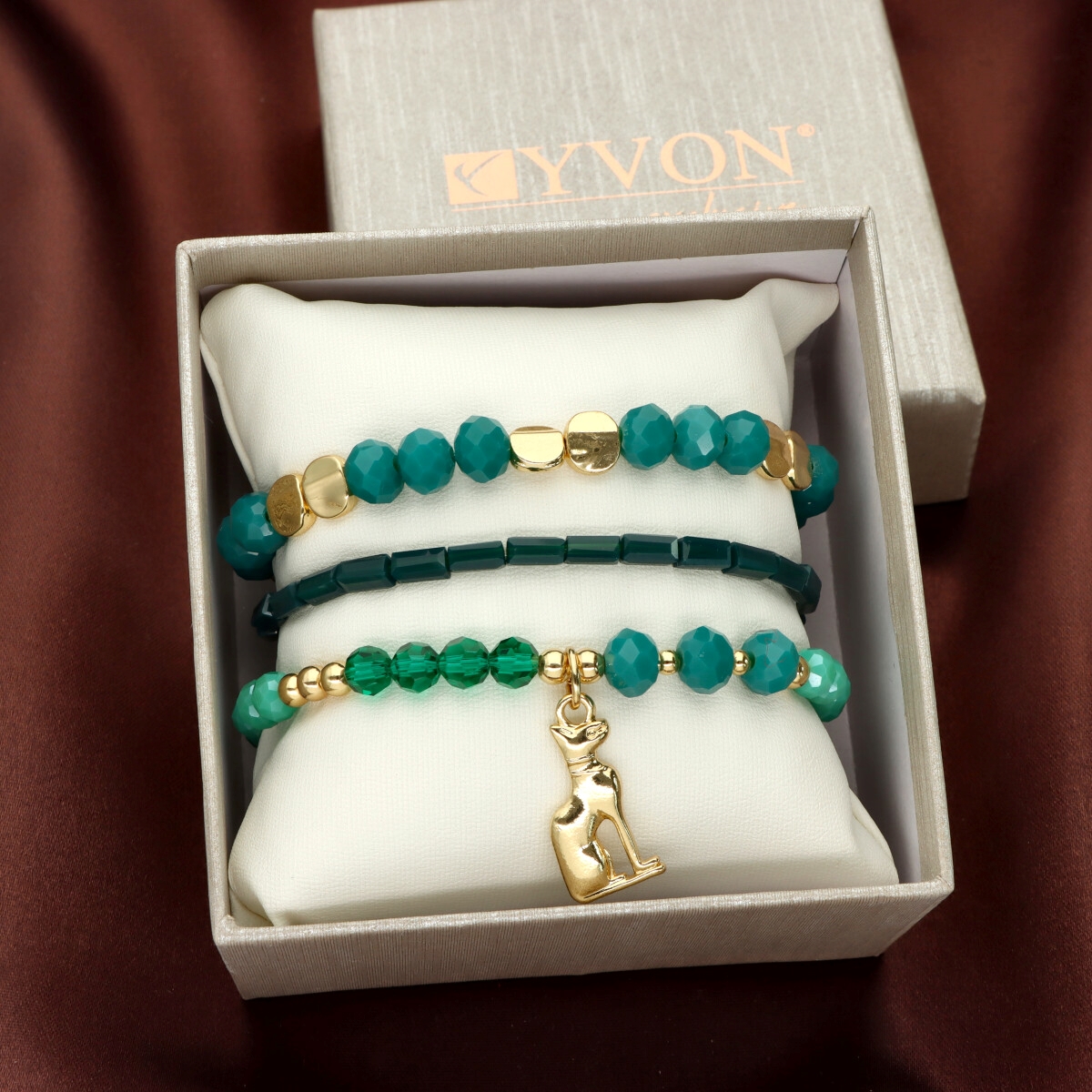 Zestaw trzech uroczych bransoletek, który łączy w sobie klasyczną elegancję i najwyższą jakość wykonania. Każdy element został starannie dobrany – od antyalergicznego mosiądzu, aż po misternie fasetowane koraliki z kryształu górskiego. Subtelne połączenie tych materiałów tworzy niepowtarzalny, ponadczasowy dodatek. Bransoletki zapakowane są w eleganckie pudełeczko z miękką poduszeczką, co sprawia, że zestaw doskonale nadaje się na prezent.