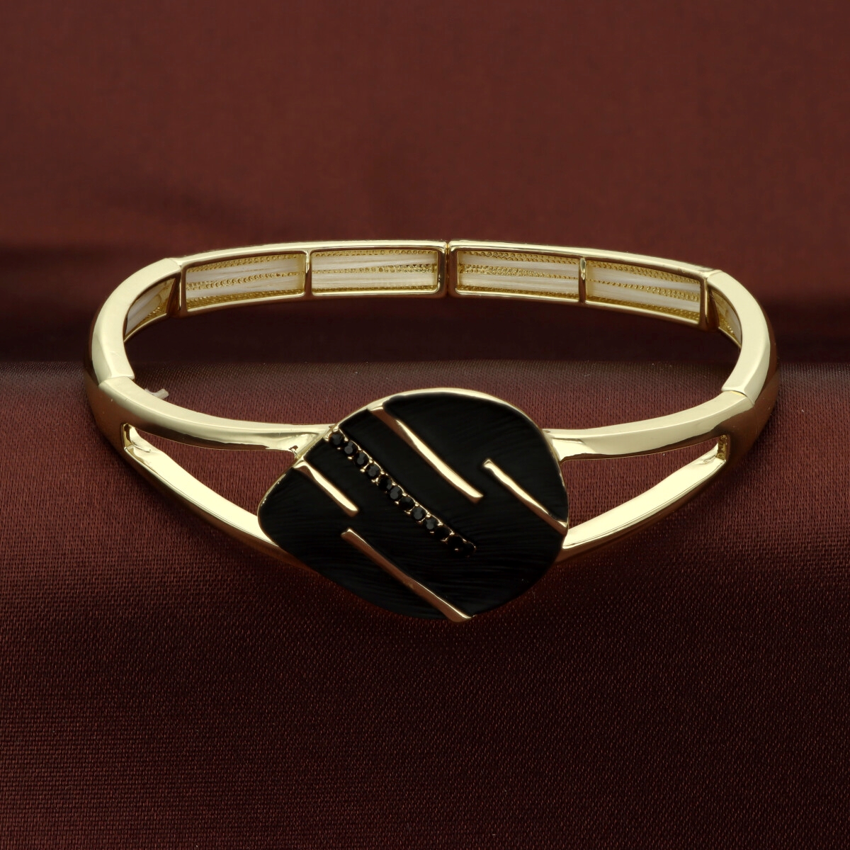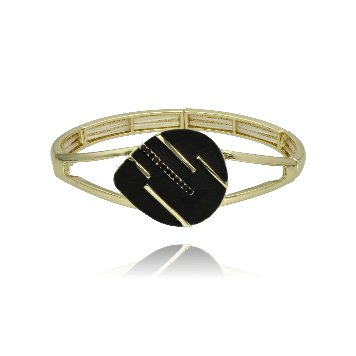 Elegancka bransoletka wykonana z metalu antyalergicznego i emalii. Rozmiar uniwersalny (na rozciągliwych gumkach). Szukaj do kompletu naszyjnika i kolczyków o tym samym indeksie numerycznym.