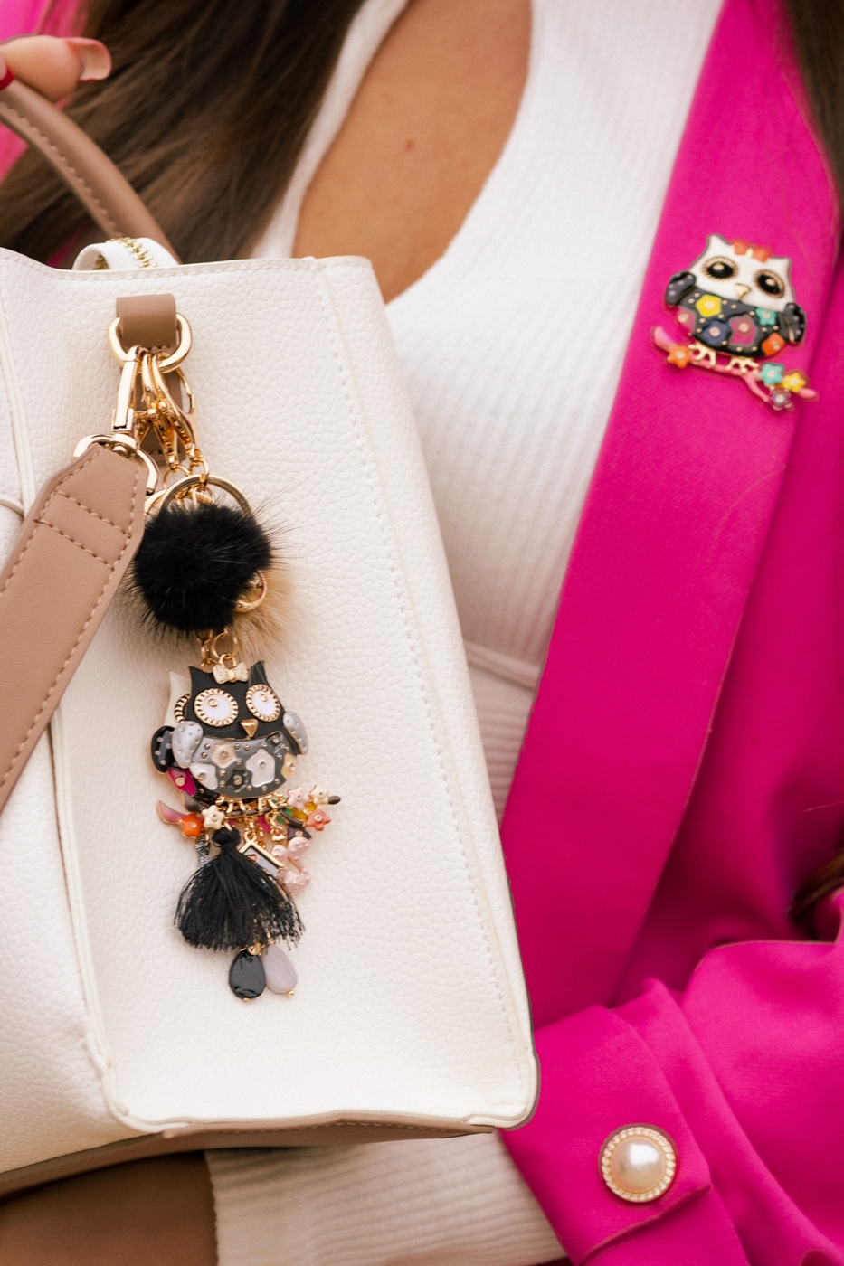 Ten kolorowy brelok w kształcie uroczej sowy to energetyczny i praktyczny dodatek, który ozdobi Twoje klucze, torebkę czy szlufkę od spodni. Wykonany z barwnej emalii i żywicy, zachwyca lekkością i radosnym designem.